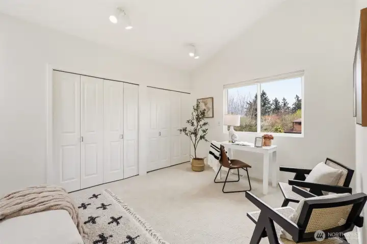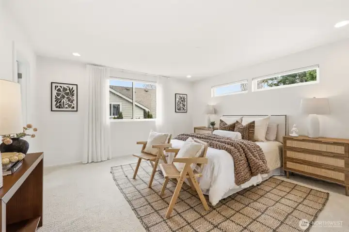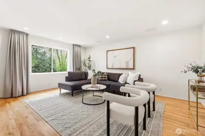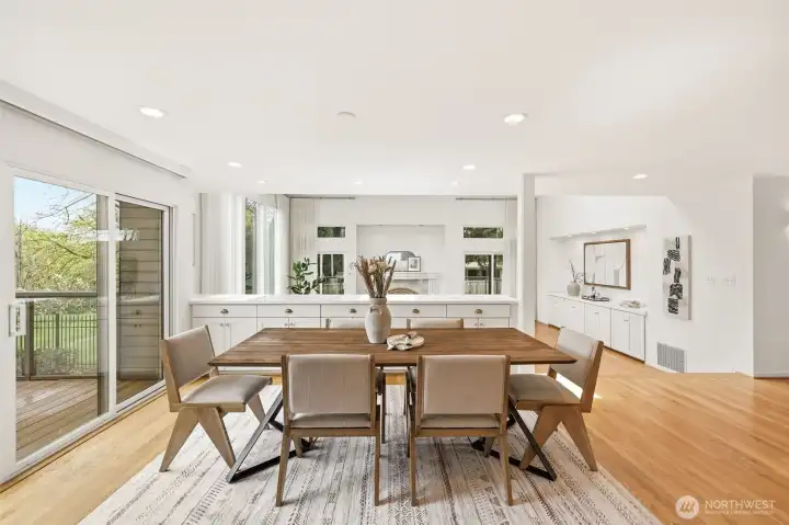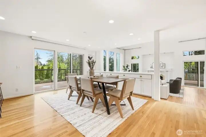 Perched atop a quiet hill on a private cul-de-sac, this beautifully renovated home offers exceptional privacy, tranquility, and versatile living spaces. Set on a generous lot, the property provides a peaceful setting while remaining minutes from Juanita Village and Totem Lake, with easy walkability to Carl Sandburg Elementary, Finn Hill Middle School and access to two Choice School programs. Enjoy close proximity to beautiful hiking trails at Denny Park and St. Edward State Park. Thoughtfully updated with high-quality materials, the home features new siding, roof, windows, doors, and expansive composite decks designed for comfortable outdoor living. Inside, a warm transitional design blends traditional comfort with contemporary style, highlighted by soaring ceilings, large windows, and spacious living areas filled with natural light. The flexible layout includes a main-floor bedroom with its own separate entrance, ideal for guests, a home office, or extended living. Additional highlights include a finished attic perfect for a playroom or retreat, a functional mudroom with its own entrance, and a primary suite with private balcony. Outdoor living shines with multiple decks, a fully fenced yard, fruit trees, and space for gardening or play. A long driveway accommodates ample parking for cars, RV, or boat, while the detached two-car garage offers room for a workshop. Unique opportunity in a prime location.
