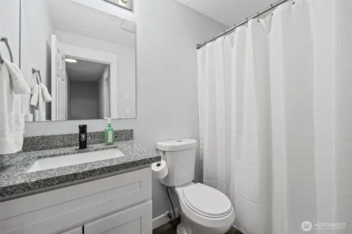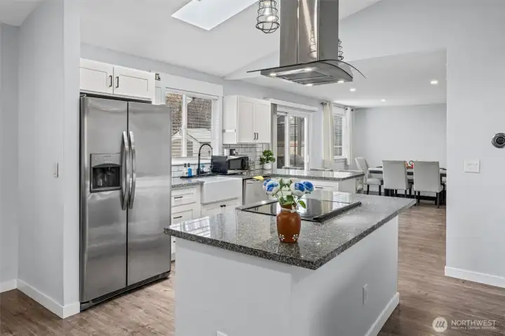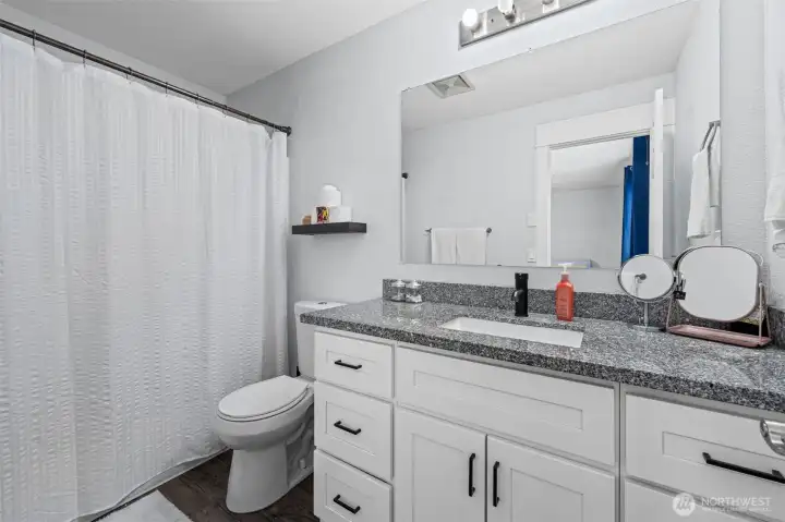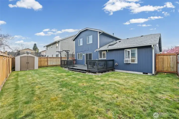 Welcome home to this beautifully updated and truly move-in ready gem in Spanaway! Featuring 3 bedrooms, 2.5 bathrooms, and approximately 1,500 square feet, this home offers the perfect blend of modern upgrades and comfortable living. Step inside to an open-concept layout with vaulted ceilings and abundant natural light, enhanced by skylights that create a bright and airy feel throughout. The fully remodeled kitchen is a standout, complete with granite countertops, stainless steel appliances, a center island, stylish backsplash, and a charming farmhouse sink—ideal for both everyday living and entertaining. Recent updates include a newer roof, furnace, hot water tank, cabinetry, trim, doors, flooring, and fresh interior and exterior paint, offering peace of mind and modern appeal. Upstairs, the spacious primary suite features a private ensuite bathroom and walk-in closet. Additional highlights include built-in vacuum, updated lighting, and ceiling fans throughout. Enjoy the fully fenced backyard with a deck and storage shed—perfect for relaxing or hosting gatherings. Situated on a generous lot with a 2-car garage, this home is located in a desirable neighborhood close to shopping, dining, and easy access to JBLM. This one checks all the boxes—don’t miss it!