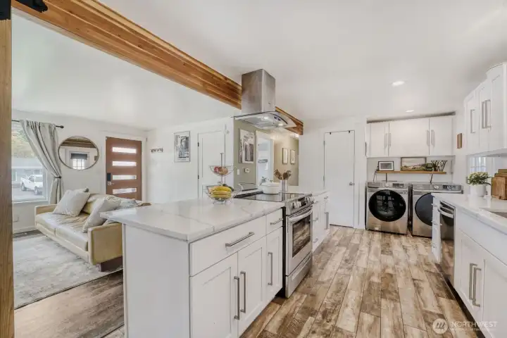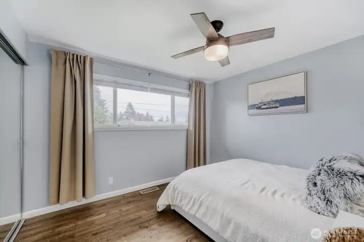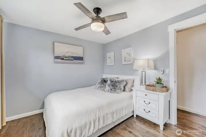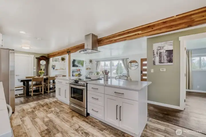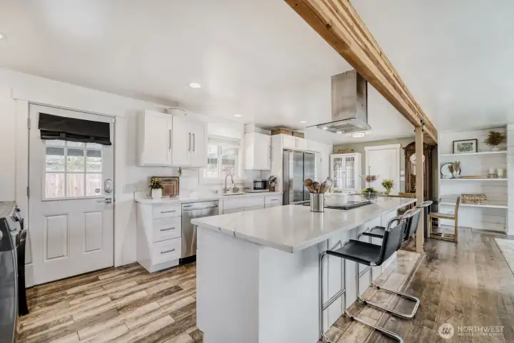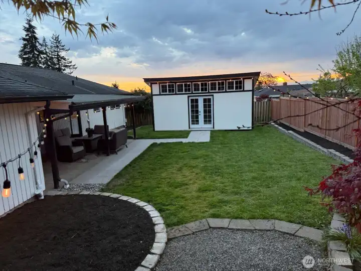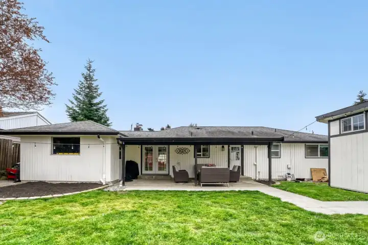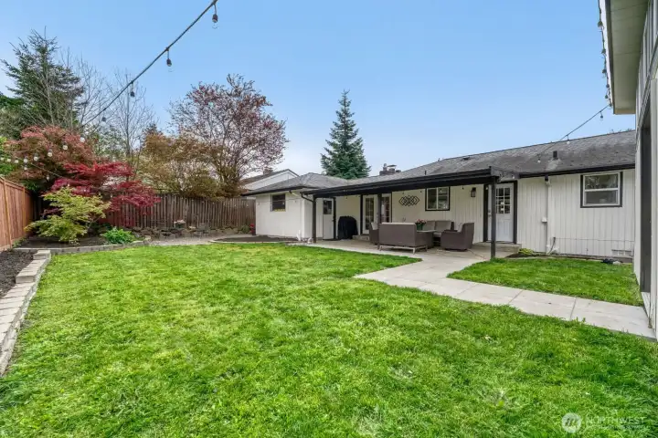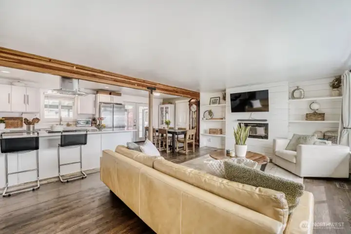 Discover effortless one-level living in this beautifully updated three-bedroom rambler, perfectly situated in the heart of the Renton Highlands. Designed with entertaining in mind, the open great room seamlessly connects to a modern kitchen featuring quartz countertops, stainless steel appliances, and a welcoming living area complete with an electric fireplace and custom built-ins. Original hardwood floors bring warmth to all three bedrooms, while updated tile and finishes throughout the home create a fresh, cohesive feel. With 3 bedrooms, 1.75 bathrooms, and an attached garage, this home blends comfort and convenience with ease. The oversized backyard is a true standout — an expansive space ideal for gatherings, play, or future projects. Enjoy the covered porch year-round and imagine the possibilities for the 200 sq ft shed, whether as a workshop, studio, or potential DADU. Located minutes from parks, schools, shops, and restaurants, including The Landing on Lake Washington,this Renton Highlands gem offers the perfect mix of space, utility, and lifestyle. Come see your next home soon.