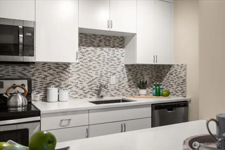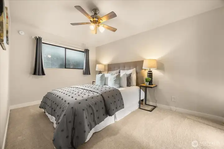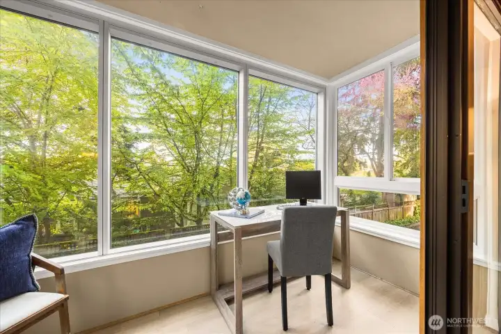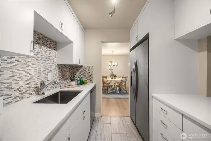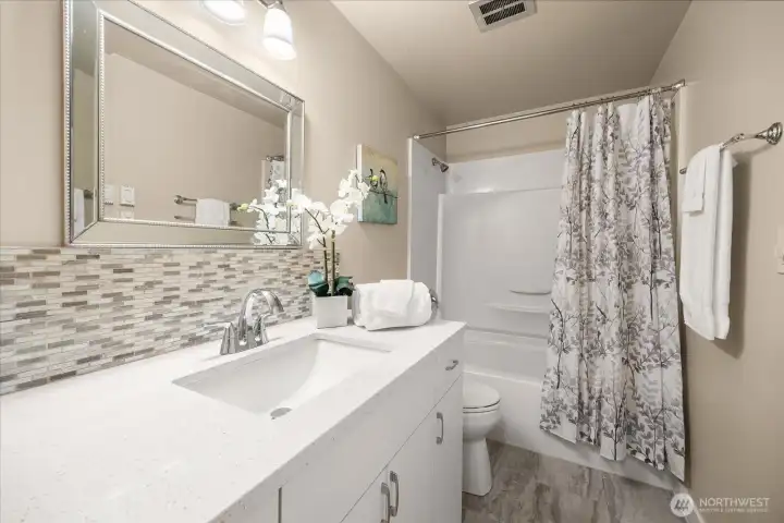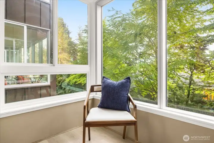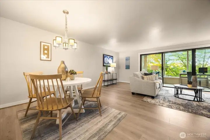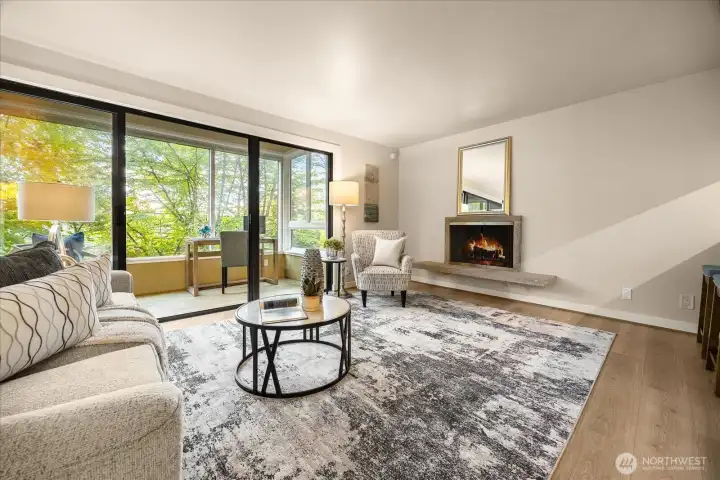Nestled between Laurelhurst and Windermere is a remodeled two-bedroom, one-bathroom home including an open floor plan and large windows that boast tons of natural light! This home features a remodeled kitchen with stainless steel appliances, quartz countertops, plenty of cabinet space, and a center eating bar. Luxury vinyl plank flooring stretches through the common living areas, meeting the private sunroom with a tree-line view. The Windermere Vista community is within a short distance to the Burke Gilman trail, U-Village, restaurants and parks. Generous storage within the home including an additional storage in the common laundry room. The home includes a wood burning fireplace, 1 off street parking space, and a stunning updated bathroom.