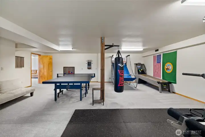 Bonus room used as a game room and workout space.