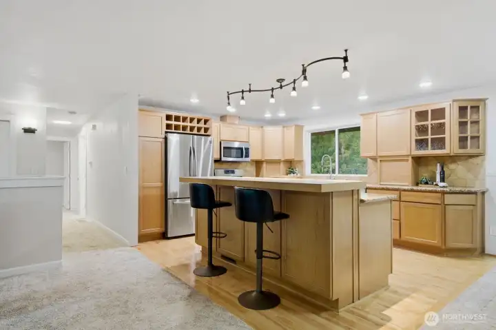 This beautifully updated one-story home with a fully finished basement showcases true pride in ownership and offers excellent income-generating potential. The main level features a bright, open layout with a spacious kitchen complete with an eating bar and newer appliances, flowing seamlessly into the dining and living areas. The primary suite includes a private ¾ bath, accompanied by two additional bedrooms and a full bathroom. Enjoy peaceful mountain views right from the kitchen window. The lower level includes a fully equipped ADU with a separate entrance—perfect for rental income, guests, or multi-generational living. This space offers a fourth bedroom with a cozy fireplace, a ¾ bath, a full kitchen with eating area, a comfortable family room, and a utility room. Step outside to a beautifully landscaped, fully fenced backyard ideal for relaxing or entertaining. Recent updates throughout the home include an energy-efficient heat pump with A/C, fresh interior paint, LED lighting, new wall-to-wall carpet, and all-new interior trim. Located within the highly regarded Northshore School District, this home is perfect as a primary residence with added flexibility for Airbnb or long-term rental opportunities. Please contact Tony Chiu for more information at ants4@hotmail.com