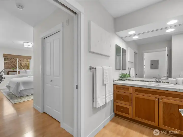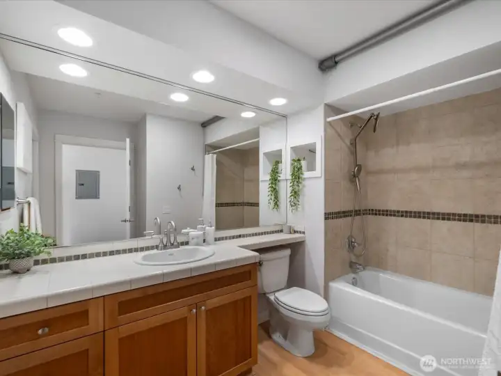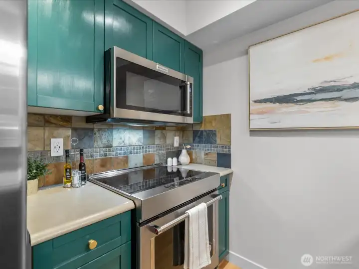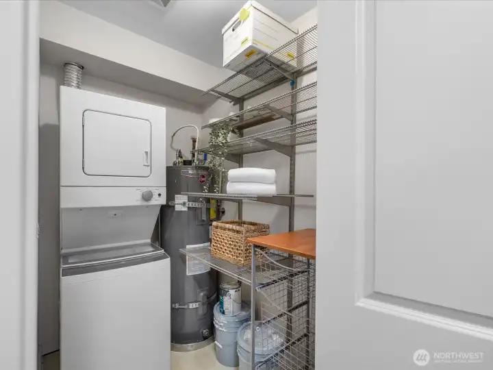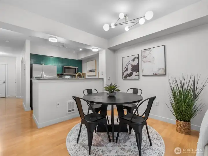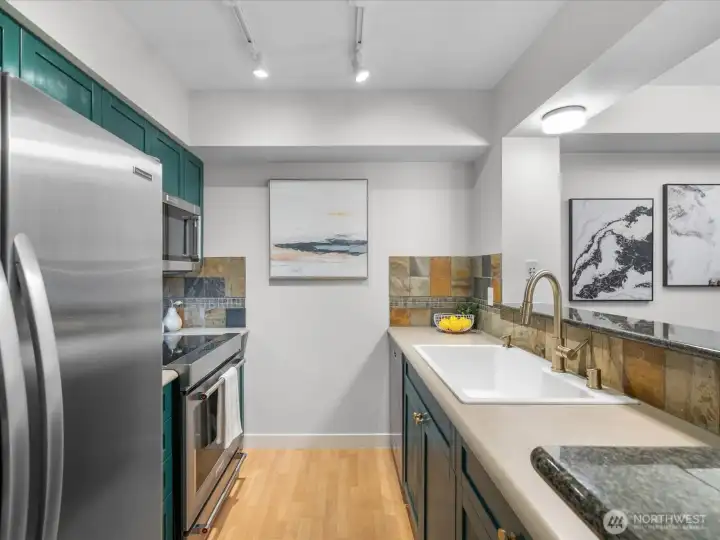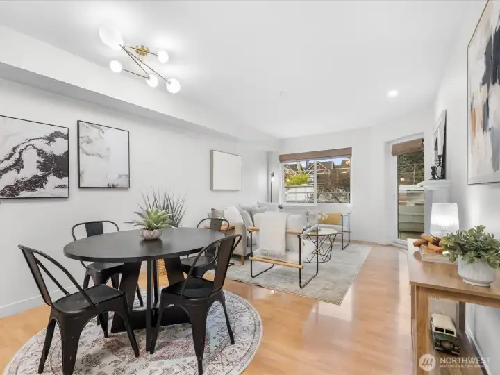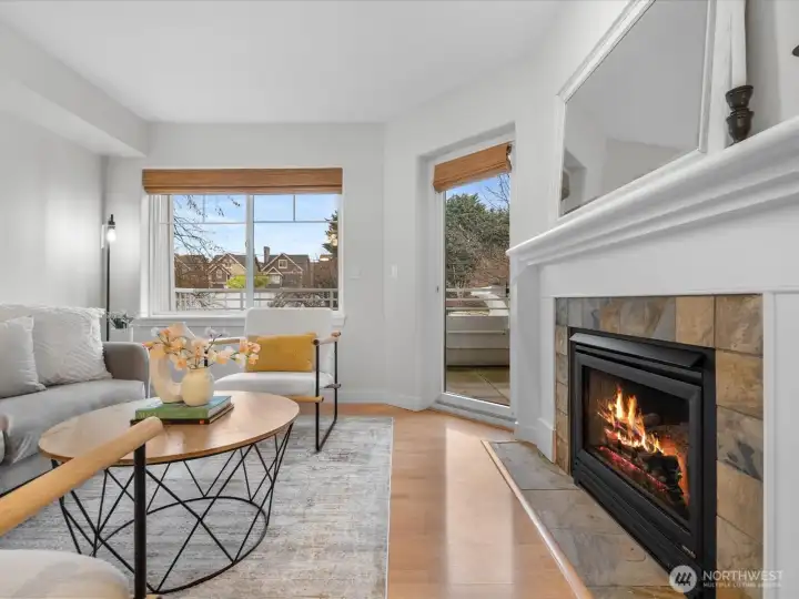 Beautifully maintained 1 bedroom + den condo offering 854 sq ft of thoughtfully designed living in the heart of Ballard. The home includes a versatile den—ideal for a home office or guest space. The living room is anchored by a cozy fireplace, while the kitchen is equipped with KitchenAid appliances, including an induction cooktop, and opens seamlessly to the main living area.The bedroom features a walk-in closet with custom built-in storage systems and convenient access to the full bath. Step outside to your private balcony with room to relax or create your own potted garden retreat. Additional upgrades include fresh interior paint, a brand new washer and dryer, and automatic blinds. This home includes one assigned parking space in a secured garage and dedicated storage. Enjoy a full suite of amenities, including a fitness center, sauna, conference room, business center, resident lounge, pea patch, two outdoor spas, and concierge services. Well-managed HOA with strong reserves and no special assessments. Located just two blocks from Market Street and moments to the Ballard Farmers Market, shops, restaurants, grocery stores, and transit. This is city living at its best!