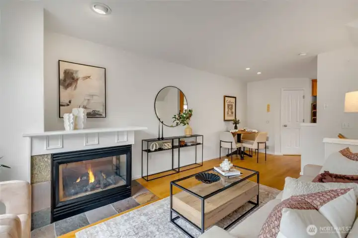 Cozy and warm with the gas fireplace.