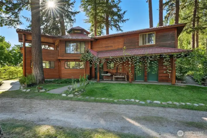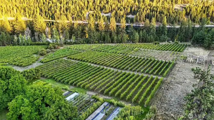 Wedding Venue** Bed & Breakfast** Vineyard *** Peace On Earth**** Nestled on 18.49 acres in Kettle Falls, WA, this unique property offers residential comfort and commercial potential. Enjoy a charming owner's residence, cozy bed and breakfast, and several outbuildings. The award-winning winery includes a tasting room, gift shop, and certified organic kitchen with restaurant potential. With a 6.5-acre organic vineyard, ample entertaining areas, and Columbia River waterfront access, this property blends serene living with a thriving wine business. Drive-in or boat-in access and plenty of camping spots make this an idyllic riverside retreat.