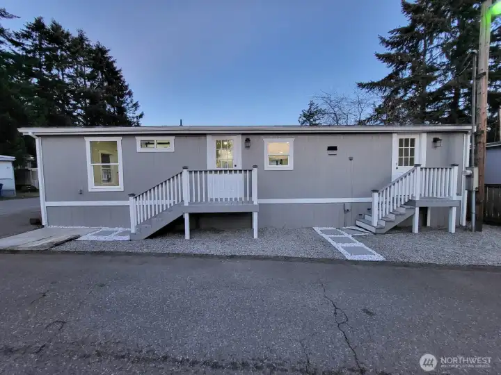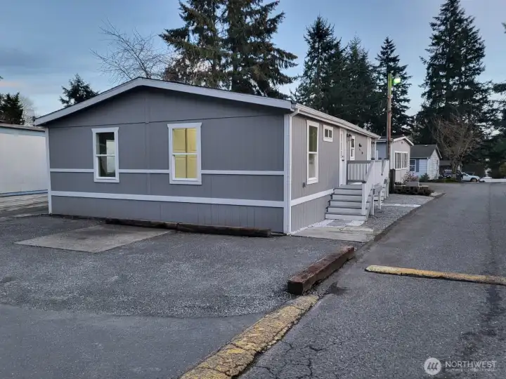 Come see for yourself! A masterfully updated, double-wide manufactured home, bound to impress guests. Positioned on an exclusive corner lot. Storage shed included. Home has 3 entrances/exits.Tucked away in an ALL AGES (NOT 55+), pet-friendly mobile home community in ideal central location. Charwood Park is like its own little world. At times, it is peaceful. Serene. Other times, it is bursting with life. Celebrations, food, music, & laughter. Community is ultra welcoming of all newcomers! Park features robust evergreen trees, flowering rhododendrons, & on-site management available to help. Online tenant portal available (w/ adjustable language settings) which features option to schedule & customize automatic rent payments, 24/7 access to view up-to-date ledger, and much more. This up-and-coming area features the new Federal Way Community Transit/Light Rail Station (only about 5 mins away), nearby access to good old I-5 & Hwy 18, and bus routes within walking distance. Perfectly placed for a commute in any direction! This home boasts new name-brand appliances, fixtures, & flooring throughout; all masterfully styled. Workmanship is ultra professional. Attention to detail is exquisite; design & color choices are modern, clean, and full of class. This spacious home is turn-key & ready to enjoy. The bright, open-concept layout is ultra refreshing. It's a gorgeous, blank canvas ready to be transformed into your personal sanctuary!