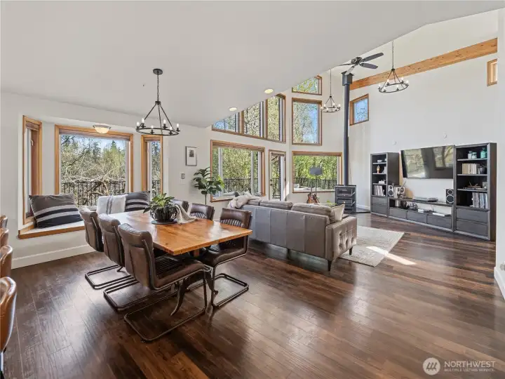Set on 4.3 serene acres, this beautifully updated custom 3-bedroom home plus bonus room and office offers space, privacy, and nearly $150K in thoughtful improvements over the last 18 months. Vaulted kitchen with quartz countertops, breakfast nook, and new appliances anchors the heart of the home. The living room features an inviting wood stove and a 2-story wall of windows overlooking the amazing landscape & foothills, while the bonus room provides flexible living space or a 4th bedroom. Primary bedroom en-suite includes a tile floor, jetted tub, and custom tile shower. The acreage is a great mix of natural forest and pasture w/ apple, cherry, pear, and grape plantings, 2+ acres newly fenced around the home & pasture (2024), refreshed landscaping with 50+ shrubs and trees and 160+ feet of Bowman Creek frontage. Practical upgrades include new architectural comp roofing, skylights and gutters (2025), a new high efficiency heat pump and air handler (2025). Tankless water heater. 2 PSE gas powered auto transfer generators (13KW well generator + a 14KW generator for the home). Extra-deep, open beam, 2-car garage w/ covered BBQ area, lean-to storage, and dog run. A rare blend of acreage living and modern comfort with a close-in & commutable location.