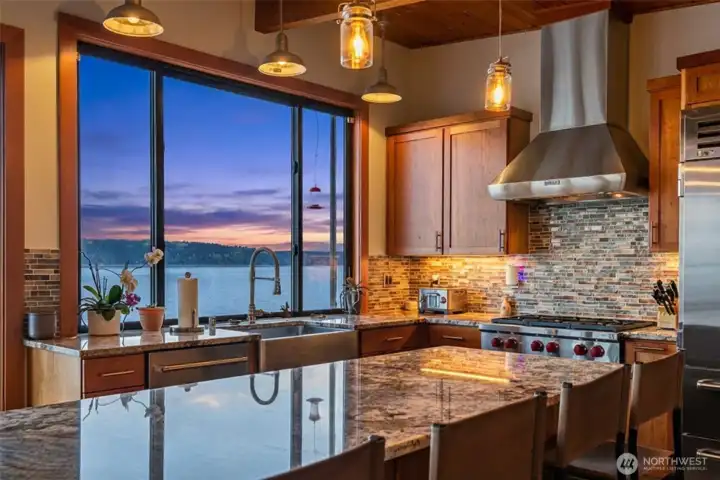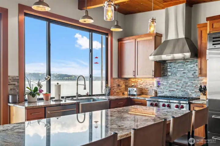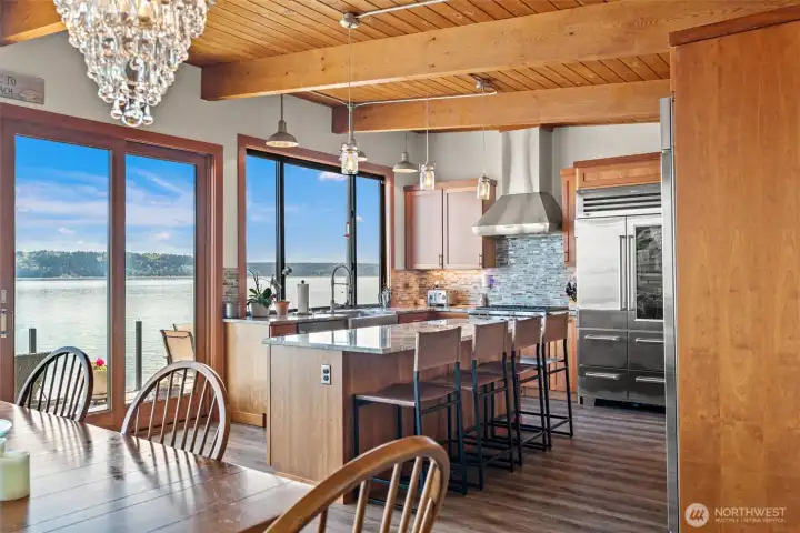 Kitchen with center island and Wolf/Sub Zero appliances including wine refer.