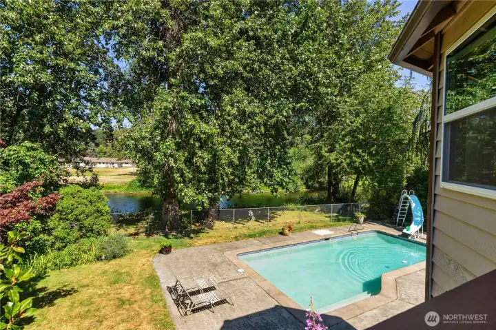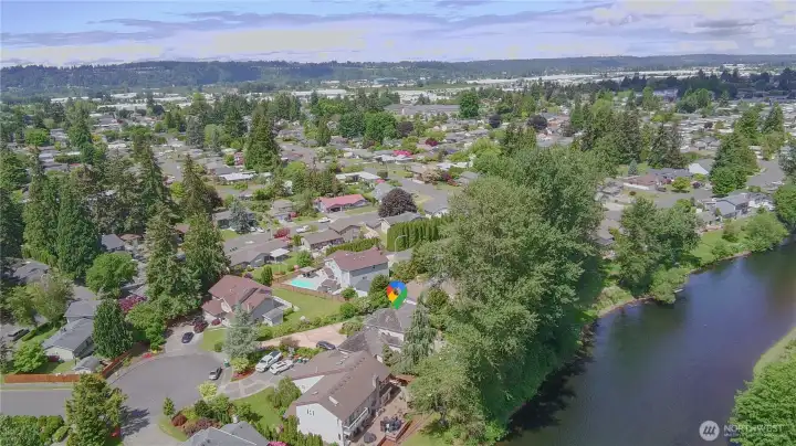 Discover waterfront bliss at this stunning Green River home, nestled on an expansive 15,000+ sq ft private lot. Embrace outdoor living with a fully fenced yard, deck perfect for BBQs, and a refreshing swimming pool & hot tub. This spacious 4-bedroom, 2.5-bathroom residence features two living areas and boasts a luxurious primary bedroom with a lovely bath and walk-in closet, and built-in vacuum. Enjoy panoramic river views through expansive windows, and relish in convenient proximity to downtown Auburn, schools, parks, and freeways. With fishing just steps away—even salmon from your backyard—and central AC for summer comfort, this move-in ready home offers the ultimate riverside lifestyle. Welcome to your Riverside Dream!