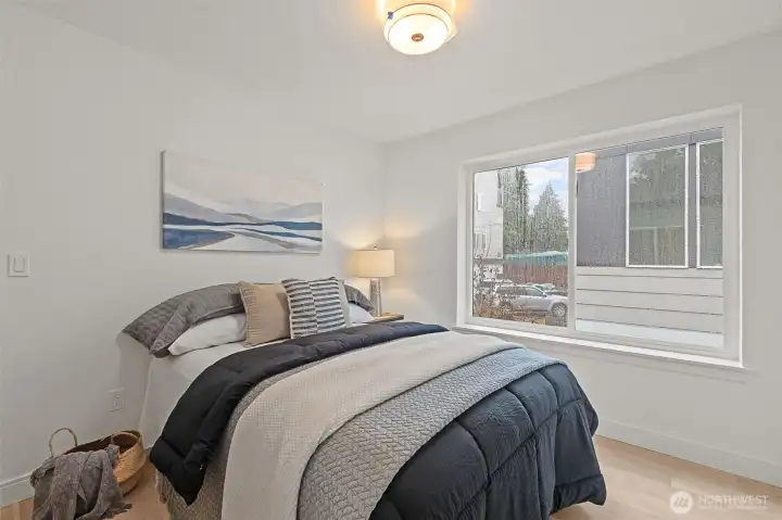 Alchemy Design Build brings design-forward cottage living to Columbia City—smart, stylish, and refreshingly intentional. Eight standalone homes deliver the feel of a single-family residence without the drag of high-maintenance ownership or rigid HOA oversight. Open main level connects a streamlined kitchen, dining, and living areas built for actual use—weeknight dinners, easy hosting, or a quiet reset. Engineered hardwoods run throughout—no carpet, no LVP, no apologies. Upstairs, two bedrooms offer calm separation with a polished bath featuring dual sinks, heated floors, and thoughtful storage. Outdoor space is private, fenced, and ready for pets, play, or a future shed. Select homes have roof decks capturing Lake Washington, Mt. Baker, and Cascade views, putting you front row for Blue Angels season. Set on a quiet residential street in coveted Columbia City, a vibrant & diverse neighborhood with independent shops & restaurants where farmer’s markets & festivals cement the tight knit community. Hop a train to the game, downtown or the airport– commuting is a breeze. For those who prefer great design and a vibrant neighborhood over extra rooms they’ll never use. Small House. Big Life.