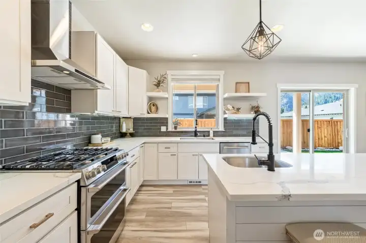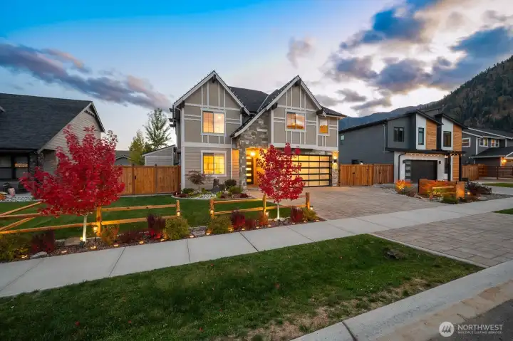 Ideally located within walking distance to downtown Leavenworth, this beautifully appointed 5 bedroom, 2.75 bath home blends refined comfort with exceptional livability. Surrounded by manicured landscaping, the home enjoys one of the most coveted settings in the neighborhood—featuring unobstructed mountain views that create a stunning natural backdrop year-round. Designed with both elegance & function in mind, the kitchen offers dual sinks, a Samsung smart fridge & dual-fuel double oven—delivering the precision of electric baking alongside the performance of gas cooking. Thoughtful details & quality finishes make this space equally suited for everyday living & elevated entertaining. The flexible floor plan includes a versatile main-level room w/spacious closet, ideal for a private home office. One of the upper-level bedrooms is exceptionally large, offering the potential to be transformed into an additional primary suite if desired. Outdoor living is equally inviting, with a spacious deck, patio & fully fenced backyard—perfect for relaxing or hosting gatherings. A newly updated paver driveway enhances the home’s curb appeal, while the attached 2 car garage & additional side-yard parking provide ample space for vehicles & recreational storage. The large side shed ensures plenty of storage room for all your tools & toys. A rare opportunity to own a thoughtfully designed home in a premier Leavenworth location, where scenic beauty and in-town convenience come together seamlessly.