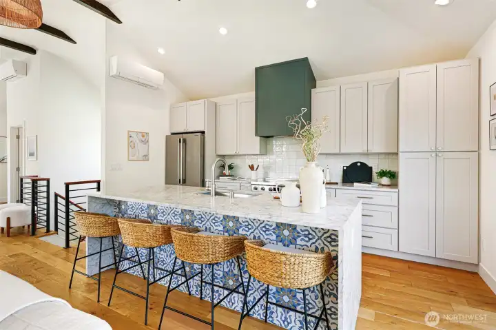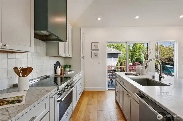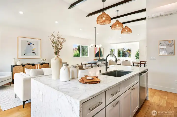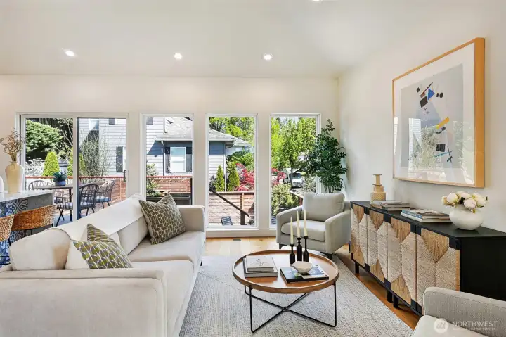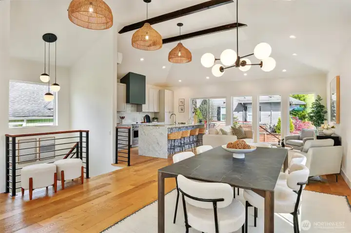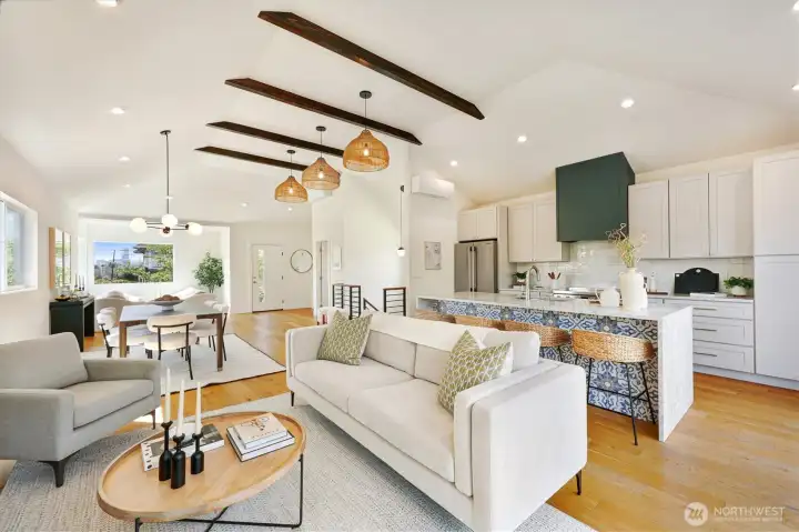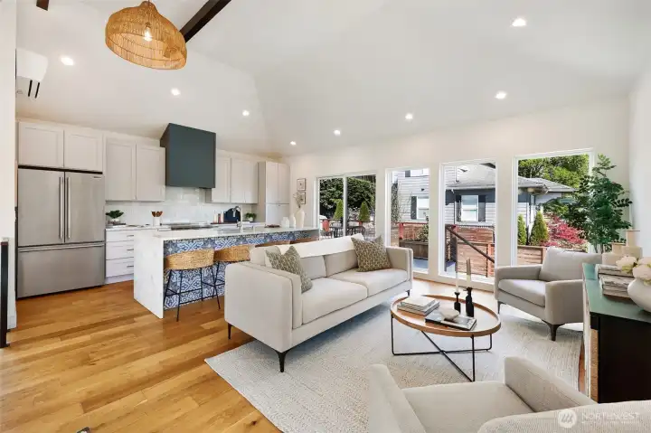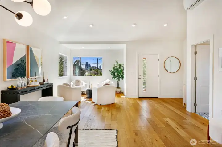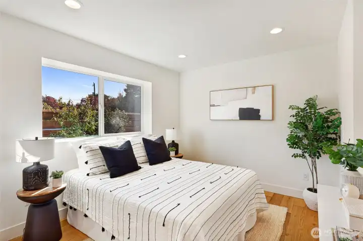 Welcome to a reimagined classic home in sought-after Madrona. Soaring ceilings bring a sense of openness, blending modern style with warm, welcoming touches. The spaces are clean and bright, with two living areas and a chef's kitchen ready for entertaining. All bedrooms are on one level, including a spacious primary suite with a walk-in closet and a luxurious bath. Enjoy views of downtown Seattle and the convenience of being close to both work and play. The Madrona retail district is a true neighborhood gem, offering coffee shops, restaurants, a market, shopping, a school, and a park—all within easy reach. Stroll to Lake Washington viewpoints, wander tree-lined streets, and connect with friendly neighbors. This is a community where pride of ownership is evident, and historic homes blend with new designs. Bus line 3 is just a block away, providing direct access to downtown, Belltown, and Capitol Hill. Once you experience Madrona, it’s easy to understand why people stay—it's a treasured neighborhood where you can build lasting memories. The home sits on a fenced corner lot with a yard and patio, plus off-street parking. Move-in ready and designed to delight your senses.