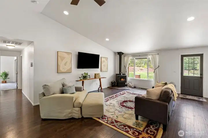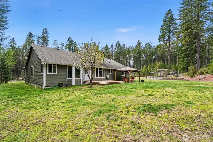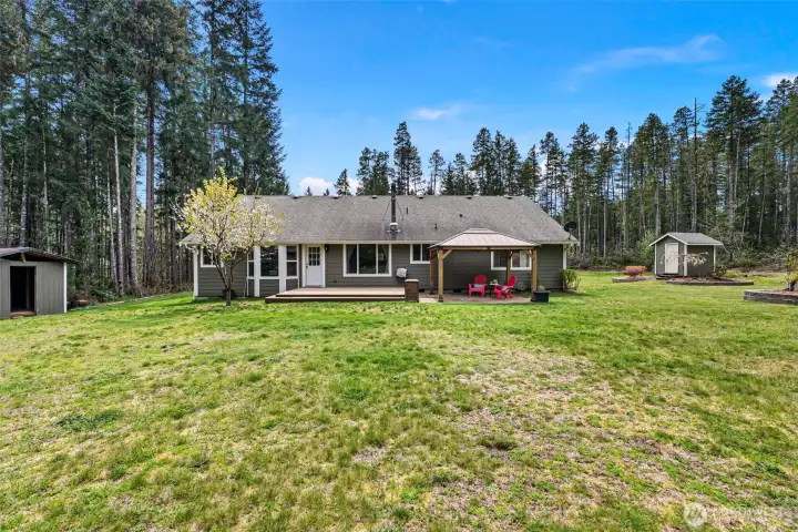 Welcome to your private retreat! This immaculate one-level home sits on 5 beautiful acres of privacy and serenity. Step inside the open great room and kitchen, with plenty of room to spread out and relax, before retreating to the large Primary bedroom and attached bath. The three bedrooms and an office have the space you need for long-term guests or working from home. This home absolutely shines, with gorgeous updates, finishes, and colors throughout. This property is absolutely stunning, with acres of endless possibilities! Whether you’re dreaming of outdoor recreation, enjoying the quiet outdoors, or expanding the already established garden, this property has everything you’ve been looking for. There’s RV parking, with plenty of room for all of your toys, and future plans. If you’ve been looking for mainfloor living on acreage, this home is an absolute must see!
