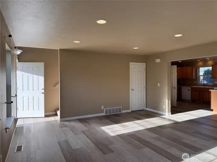 Beautifully maintained 3-bedroom (+Den/Office with exterior door to backyard), 3-bath home on nearly half an acre in the highly sought-after Liberty School District, close to Park & Local amenities including the local Harvester Restaurant. Offering the perfect blend of comfort and small-town charm. Built in 2007 and thoughtfully refreshed, this spacious 2,504-square-foot home is truly move-in ready, featuring brand-new Luxury vinyl plank flooring on the lower level. The open and functional layout provides generous living space ideal for everyday living, entertaining, or hosting guests, with flexibility for home offices or multigenerational living. Step outside to enjoy the beautifully landscaped 0.48-acre lot, complete with mature trees, established landscaping, and plenty of space to relax, garden, or play. Enjoy peaceful farmland views and beautiful sunsets from your own yard, capturing the quiet charm and slower pace that make small-town living so special. Perched on the hill within Spangle city limits, this home offers a serene setting with convenient access to Spokane and surrounding communities.