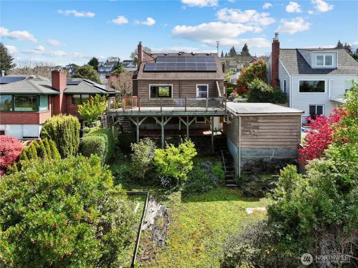 Spectacular west-facing views stretch from Vashon to Bainbridge, showcased from an expansive deck ideal for relaxing or entertaining. This charming Cape Cod–style home blends timeless character with thoughtful updates, including a beautifully appointed kitchen featuring custom cherry cabinetry, granite countertops, and convenient slide-out pantry drawers. Set in the highly desirable Gatewood neighborhood, known for its quiet streets and underground utilities that preserve open skies and sightlines. Energy-conscious buyers will appreciate the 13-panel solar photovoltaic system, offering efficiency and long-term savings. A rare opportunity to enjoy classic design, modern comfort, and sweeping Puget Sound views in one of West Seattle’s most sought-after settings. Minutes to shops, dining, and parks, with easy access to all that West Seattle has to offer, a setting that truly captures the best of Pacific Northwest living.