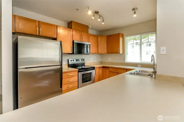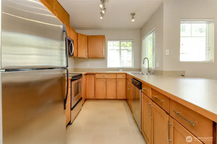 Beautiful and spacious 2-bedroom, 1-bath condo featuring an open floor plan and comfortable living spaces. The kitchen offers stainless steel appliances and great functionality, while large windows bring in natural light throughout. Enjoy your own private deck, perfect for relaxing. This home includes a private garage plus additional parking in front, providing convenience for a second vehicle. Entry is on the main level with living areas thoughtfully arranged above. Roof was replaced in 2025. Located in a quiet, well-maintained community with easy access to I-5, I-405, and Hwy 167. Move-in ready and ideal for both homeowners and investors.