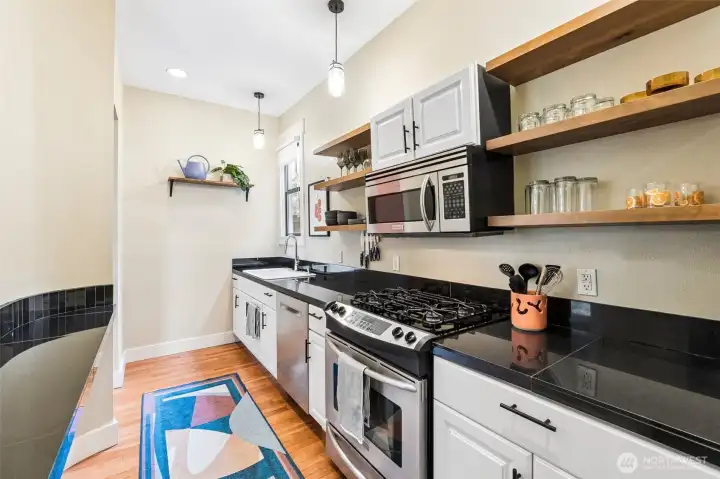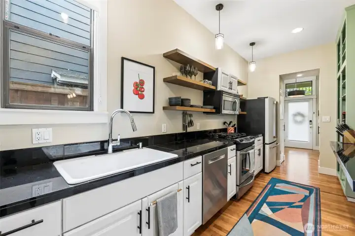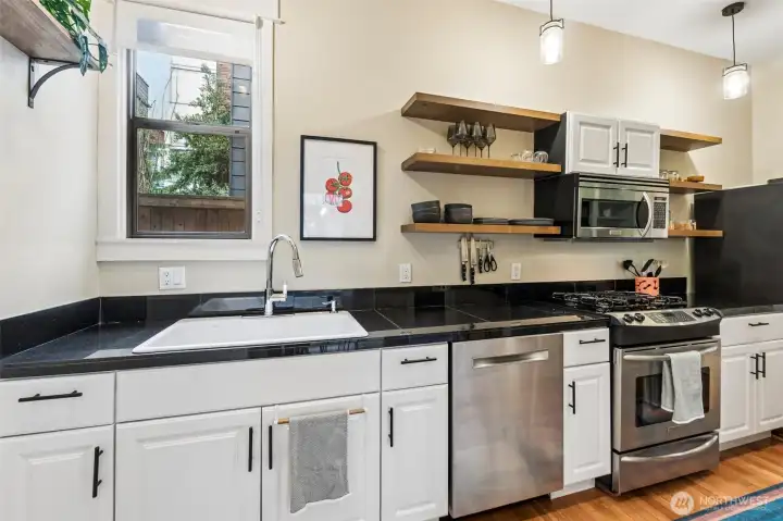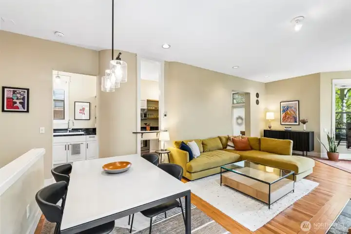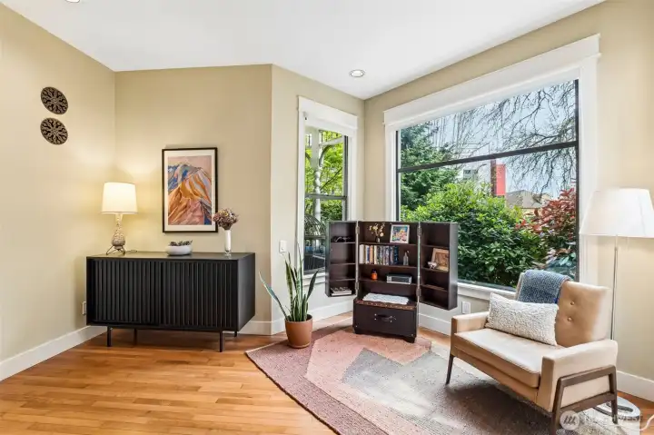 Welcome to your private oasis within the city. You must see this place in person to capture its beauty and uniqueness. This one-of-a-kind condo conversion lives more like a home than a normal condo, including its own distinct entry and outdoor space. The bright and inviting living room has tall ceilings, huge windows looking out into a garden, and hardwood floors throughout. Main floor bedroom has a walk-in closet and a 3/4 bath adjacent to it. The primary bedroom features a walk-in closet as well as a beautifully remodeled en-suite bathroom. One large parking spot in the garage with a storage unit as well. New furnace and newer hot water heater and appliances makes this home move-in ready. High Walk Score and close proximity to grocery stores, restaurants, and parks captures city living at its best. Welcome home!