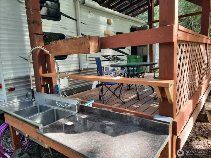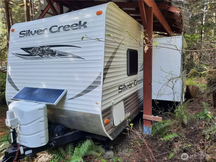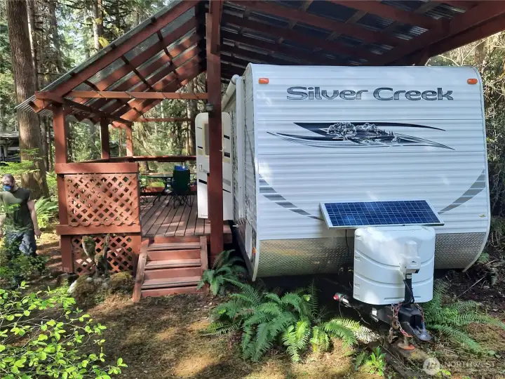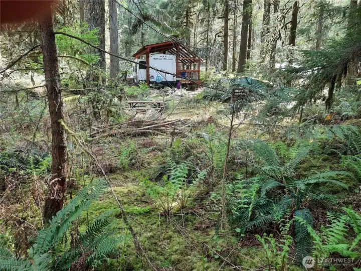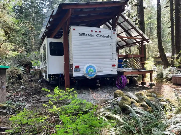 Come for camping fun on this lovely recreational property! Covered RV ready for sleepovers or bring a tent and listen to the roar of the nearby Cascade River! The North Cascades offer many recreational opportunities. Lots of room to sit around the fire pit after hiking or fishing. 26' travel trailer with covered porch and roof over the trailer. Outdoor kitchen with 2-basin commercial sink, commercial stainless steel propane grill, and iridescent granite countertops. 120-gallon propane tank with buried gas lines and separate first stage and second-stage regulators. Propane generator in sound proof enclosure. Solar Panel keeps battery active. Picnic table, Fire pit, Woodshed, Mossy gravel pull-through driveway, and more! Priced to sell!