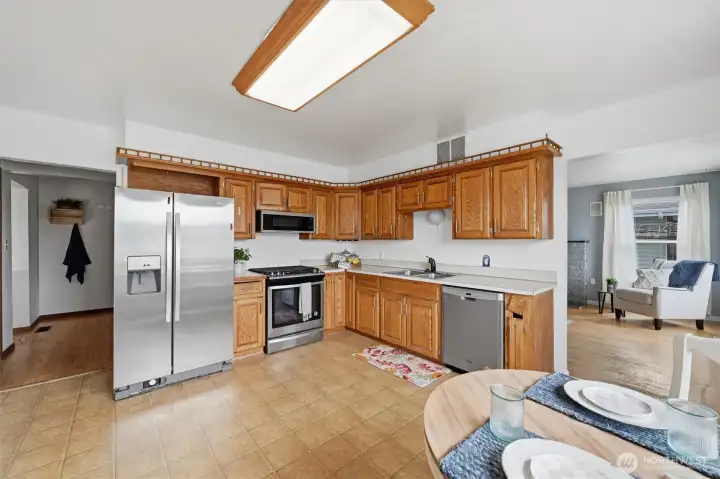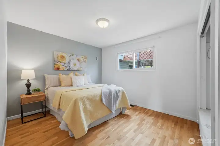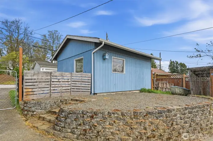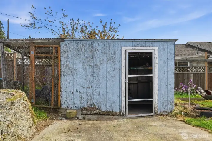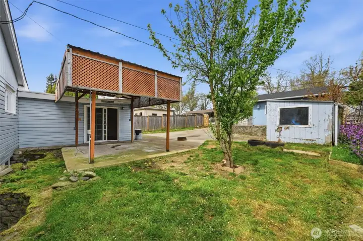 Mid-century single-story home with basement and Mount Baker and foothill views. The main level includes 3 bedrooms and 1.75 baths. Downstairs is a 4th bedroom, cold storage, storage closet, additional finished room, and a bonus room. This home is a solid structure, ready for updates, providing an opportunity to add value while maintaining its mid-century character. Brand new roof in 2024, gas fireplace, flowerbeds, garden shed, 1 car carport, and a covered patio for outdoor use. Alley access provides extra parking options and easy access to the 576 sq ft detached shop, ideal for storage, projects, or workspace. This is a walkable home to downtown Lynden with many shopping, dining and service options!