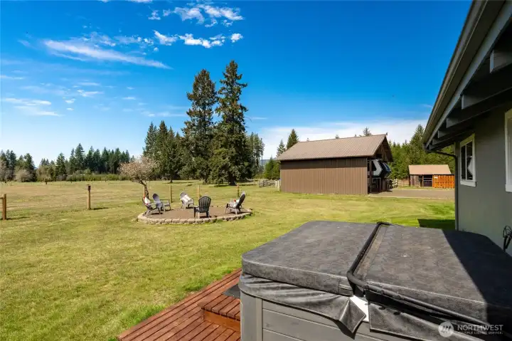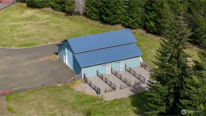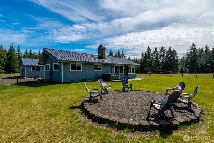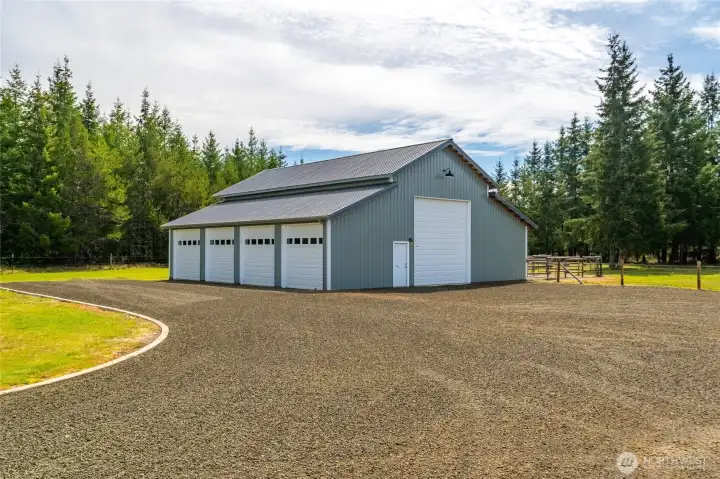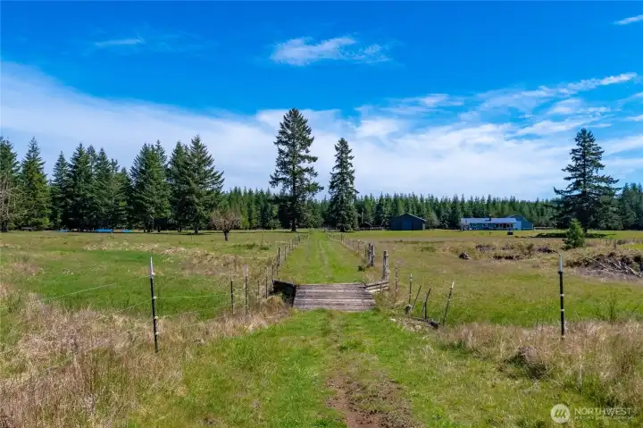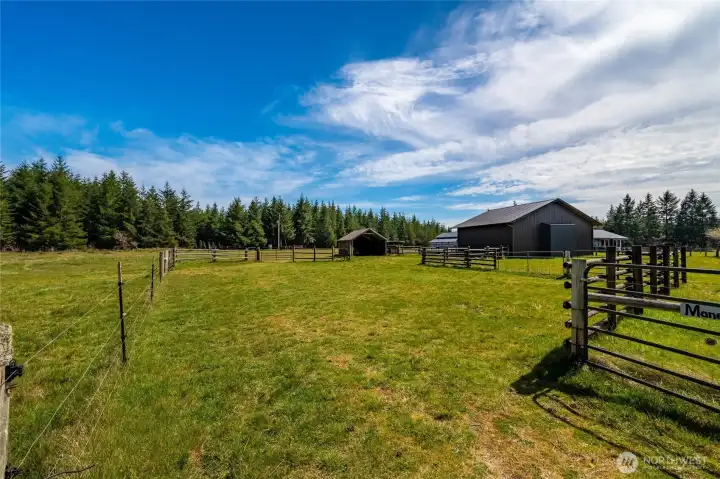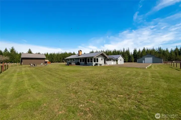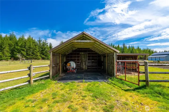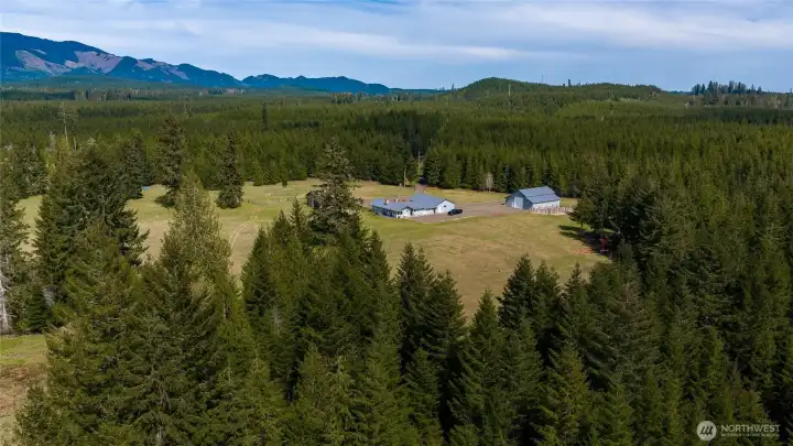 40-acre farm at the base of the Olympic Mountains, set up for livestock and equestrian use. Fully fenced and cross-fenced into 7 pastures with approximately 1,000 feet of frontage along Dry Bed Creek. The home is positioned well off the road with a gated entrance, offering privacy and a functional layout for a working property. The 2,112 sq ft home includes 3 bedrooms and 2.25 baths and has been fully renovated with high end finishes. Features include a metal roof, heat pump, stainless steel appliances, fiber optic internet, hot tub, and an oversized 3-car attached garage. Improvements are well thought out and designed for everyday use. Circular driveway with fresh gravel and ample parking. RV Parking with full hookups. A large equipment shed provides space for tractors, trailers and other farm equipment, and a dog run is already in place. The newly constructed 48'x48' shop/barn includes workshop space, 3 finished stalls with room for a fourth or a tack room, and gravel runs. A 14'x14' door allows for RV, boat, or trailer storage. The Way Back field is newly planted with Christmas trees. Ride out access is located across the street, with direct proximity to 32 miles of Timberland trails. The entire property is meticulously appointed and maintained. This is a well-equipped, ready-to-use property with the infrastructure in place for a range of agricultural or recreational uses.