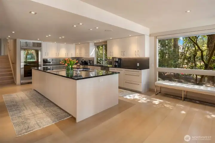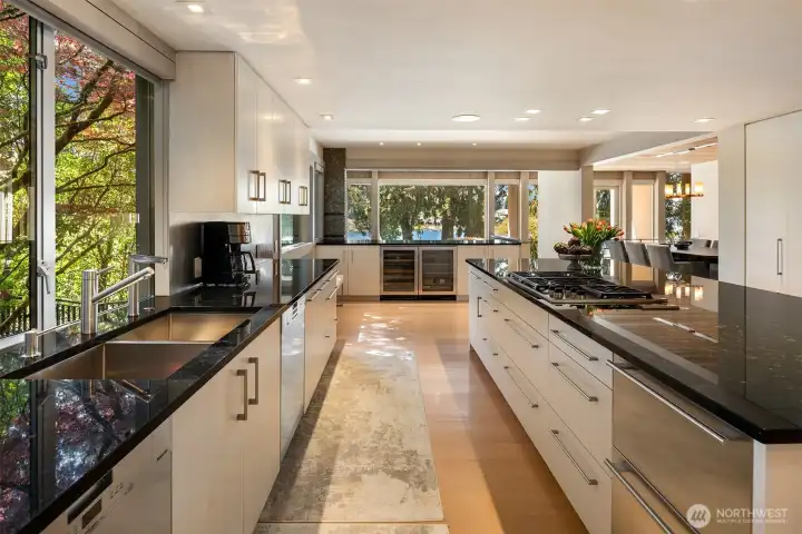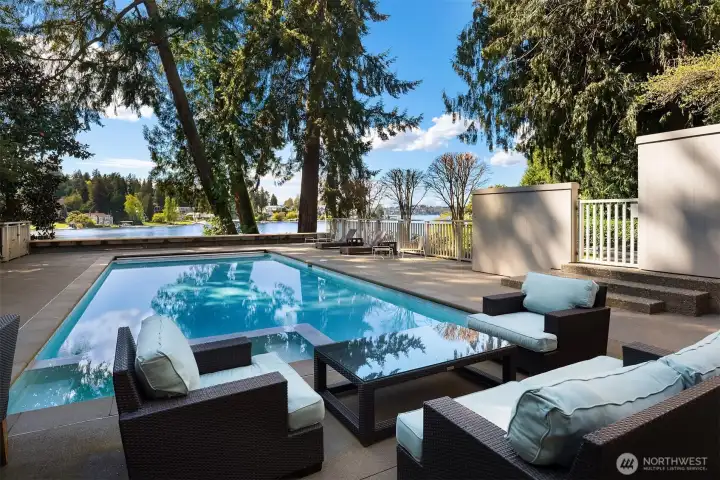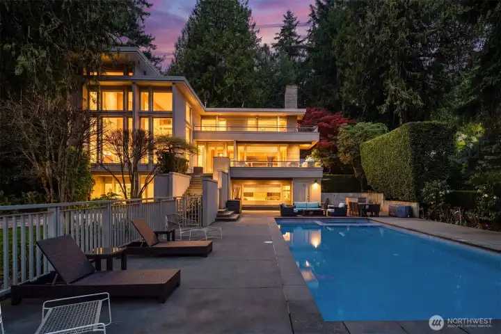 Nestled within one of the Northwest’s most coveted communities, this gated, west-facing Hunts Point waterfront Contemporary highlights a stunning Olson Kundig refresh executed by Toth Construction. Set on 1.46 arboretum-like acres, a private drive leads to an architectural masterpiece defined by stone and glass. Soaring walls of windows and a curated palette of natural materials frame captivating lake views. The versatile floor plan offers exceptional everyday living and entertainment areas with epicurean kitchen, and generous dining space. Six bedrooms, two offices, and a dedicated secondary wing provide ideal flexibility, while the lower level features a rec room, gym, and additional bedrooms. Outdoors, a serene pool and multiple decks overlooking the water. The expansive lawn extends to the 112 feet of shoreline. A rebuilt dock accommodates a 65+ foot yacht, helipad, multiple boats and two lifts. Arrive by land, water, or air and embrace the lake lifestyle in this rare legacy estate.