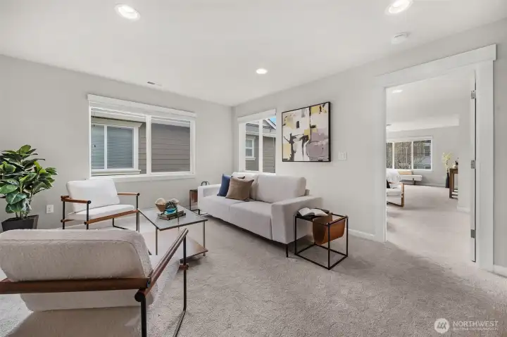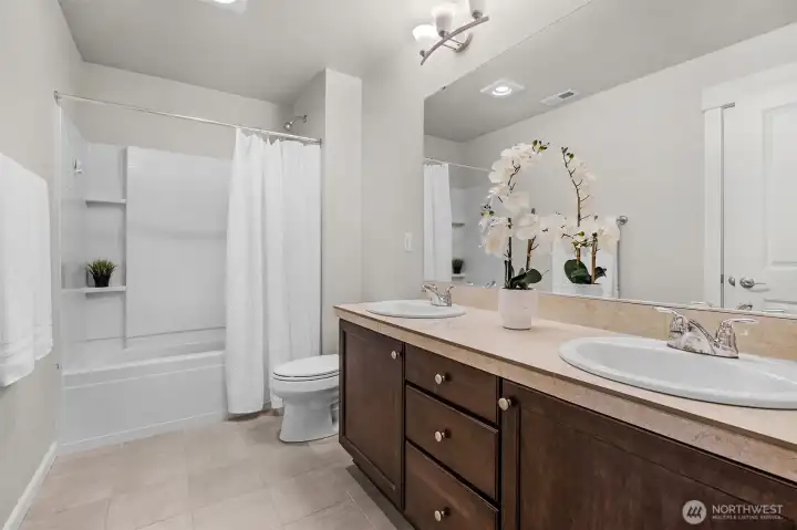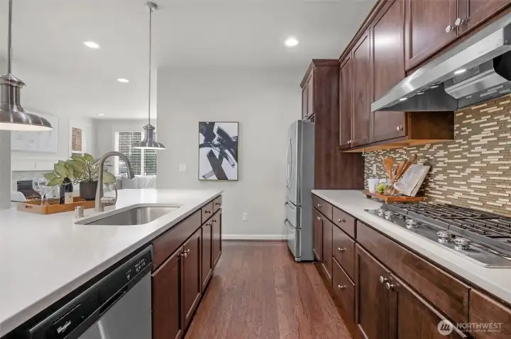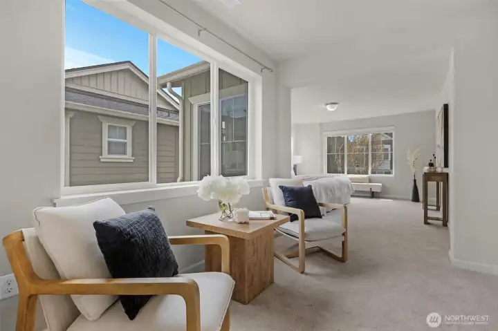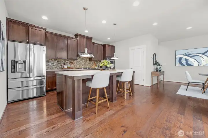 The Gold Standard of Timber Creek Living! Welcome to this impeccably updated 3-bedroom, 2.5-bath masterpiece by Toll Brothers, where modern luxury meets turn-key convenience. Step inside to experience a home that feels brand new, boasting a complete professional interior repaint and plush, brand-new designer carpeting throughout. The open-concept main level is anchored by rich hardwood floors and a chef-inspired kitchen featuring premium stainless steel appliances, expansive cabinetry, and a massive center island designed for effortless entertaining. The upper level is a sanctuary of space, headlined by a palatial primary suite featuring a dedicated sitting area, a spa-like 5 piece bath, and a generous walk-in closet. A versatile loft serves as your dedicated home office, media hub, or creative play zone, flanked by two additional bright bedrooms. Outside, your fully fenced, private courtyard awaits summer BBQs and peaceful mornings. Immerse yourself in resort-style living with exclusive access to a high-end clubhouse, sparkling pool, sports courts, playgrounds, and several acres of serene, preserved trails. Ideally situated in the award-winning Northshore School District, including Fernwood Elementary, Skyview Middle, and North Creek High, you are minutes from top-tier tech hubs and Bothell's vibrant amenities. Don't settle for "standard", experience the exceptional quality of a Toll Brothers home; this is the move-in ready opportunity you've been waiting for.