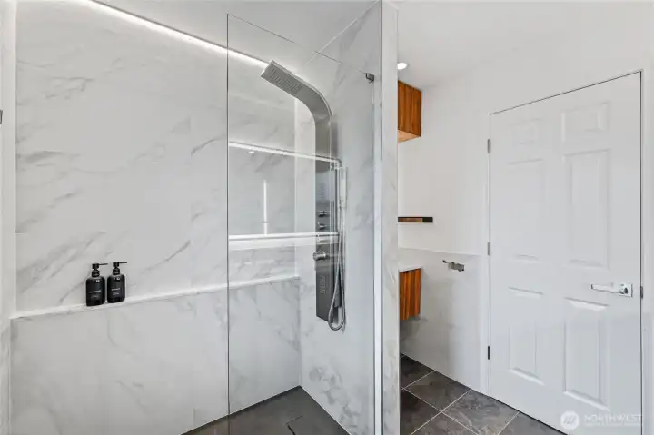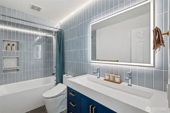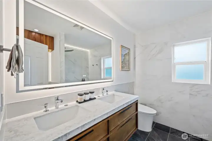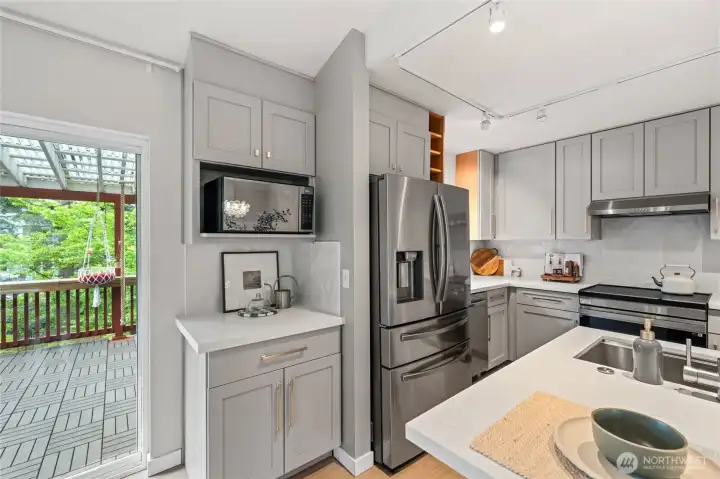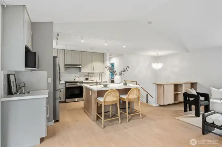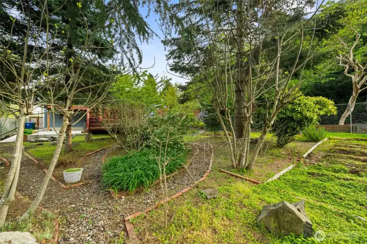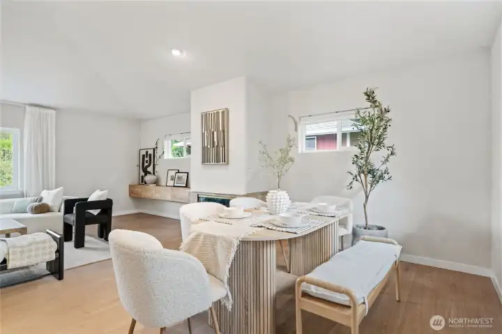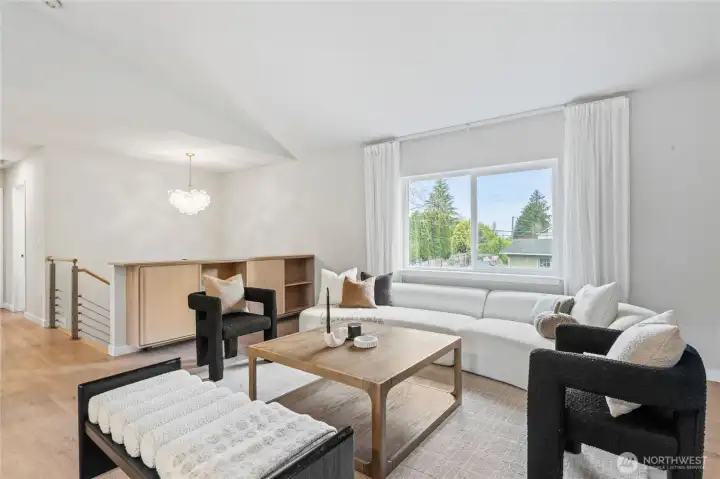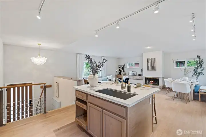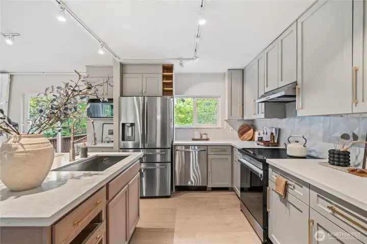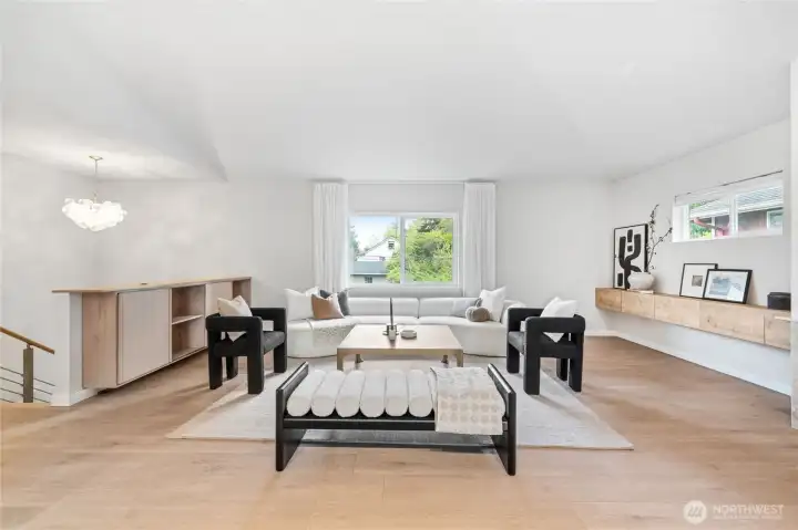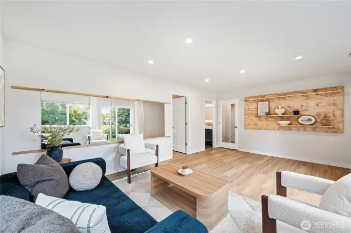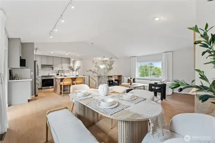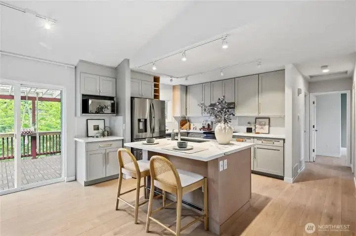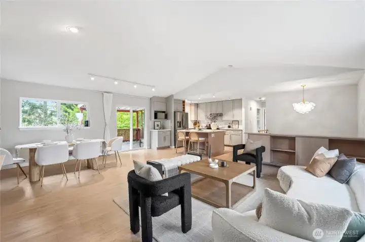 Fully remodeled 3 bed, 1.75 bath in the desirable Riverview community of West Seattle, this beautiful home is tucked away on a quiet private street bordering protected public land for rare, lasting privacy. Recently renovated with a clean, modern aesthetic including premium LVP and porcelain tile flooring, updated bathrooms, and a stylish kitchen with quartz countertops, stainless steel appliances, pull-out drawers, and a large island with bar seating. Vaulted ceilings and an open-concept main living area create a bright, spacious feel filled with natural light. Equipped with A/C and a high-efficiency heat pump—an increasingly rare and highly sought-after feature in Seattle—plus EV charger for added convenience. Attached 460 SqFt garage plus ample driveway space. Lower level features a separate entrance with strong ADU or rental potential or ideal multi-generational living. Outdoor spaces shine with expansive multi-level decks, a new large concrete patio (2024), and a new storage shed, all set within a true gardener’s paradise with multiple garden beds, fruit trees, mature landscaping, and winding paths. Located next to Riverview Playfield with trails and open space. Easy commute with quick access to Seattle and Bellevue, walk to bus lines and minutes to future light rail. Move-in ready with the perfect blend of privacy, flexibility, and indoor-outdoor living.Turn-key in every sense—just move in, unpack, and start enjoying West Seattle Living at its best.