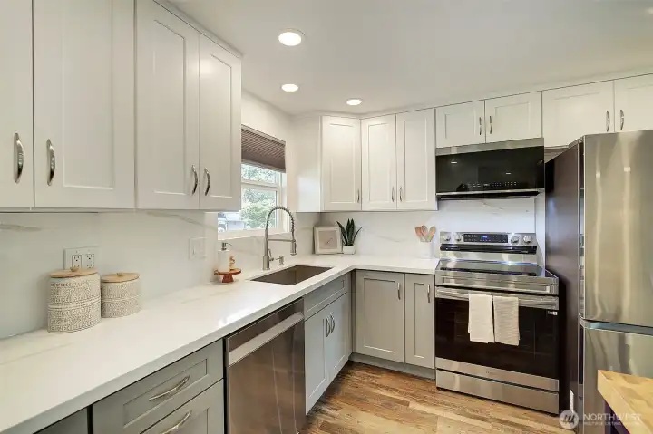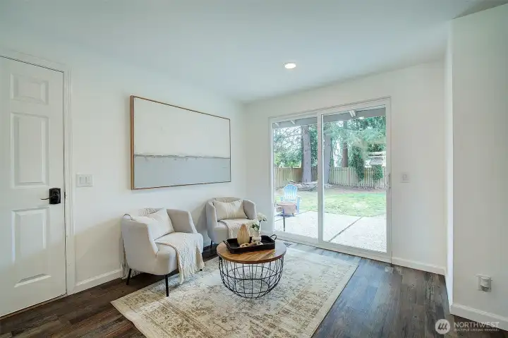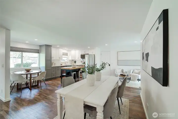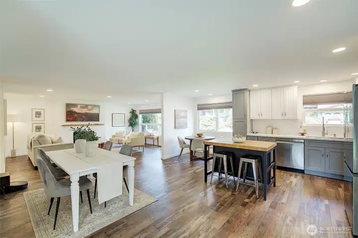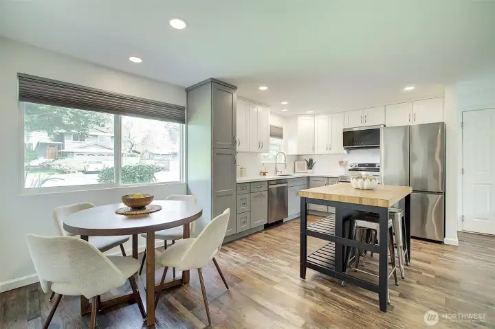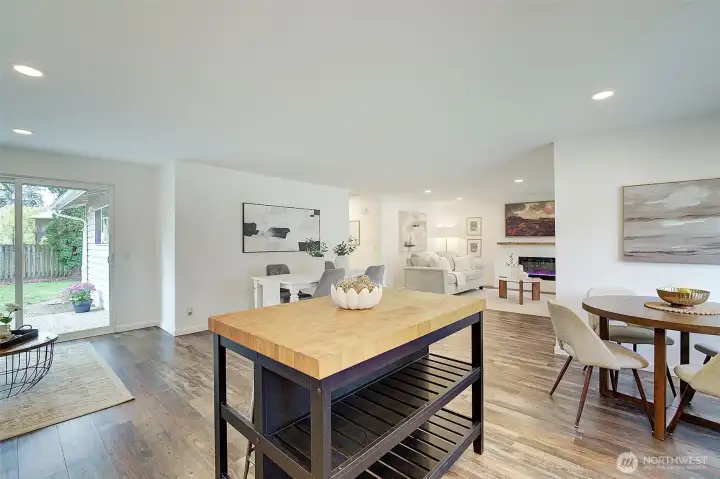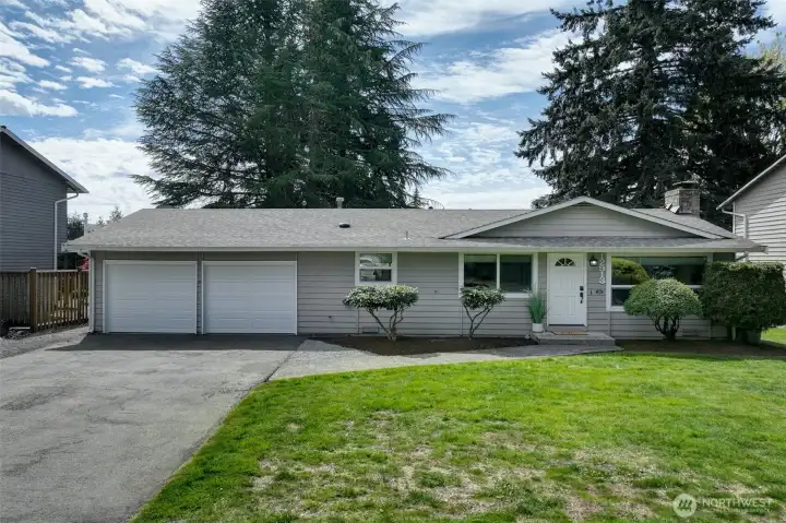 Welcome to this Remodeled single-level rambler in a desirable north Kirkland neighborhood, just minutes from the vibrant new Totem Lake Village and Evergreen Hospital. Enjoy a spacious, fully fenced backyard offering excellent privacy, perfect for outdoor entertaining, gardening, pets or simply relaxing. The oversized and finished two-car garage provides room for office, gaming or play space. Quiet street and you’ll love the convenience of being close to parks, top-rated schools, shopping, and dining. A wonderful blend of comfort, location, and privacy awaits. 65" Canvas TV and built-in electronic multi option fireplace. New gas furnace 2024. Drop stair in garage provides access to lighted storage space plus an 8 x 12 storage shed in the rear yard. Level driveway with room for four cars or great option for RV or Boat storage. Top Rated Lake Washington School District. 1/2 Block to 132nd Square Park for walking, sports and play. Commuters Dream - 405, Woodinville, Redmond, Rose Hill.