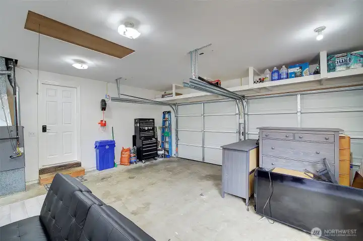 Drop stair to lighted storage space.