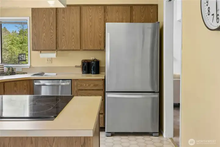 The lovely updated bath has a new dual vanity and fixtures plus a heated floor.