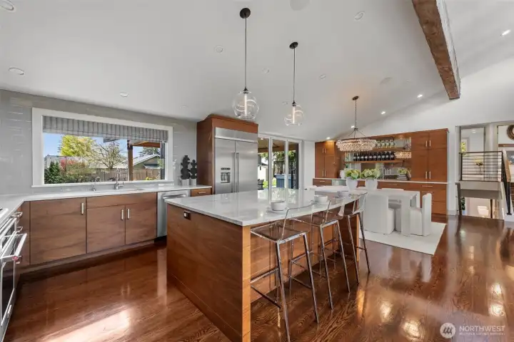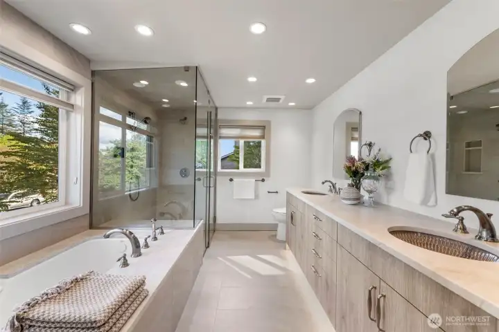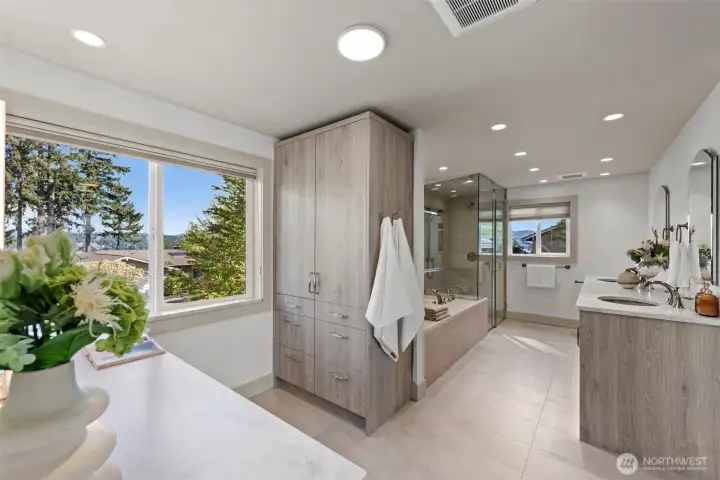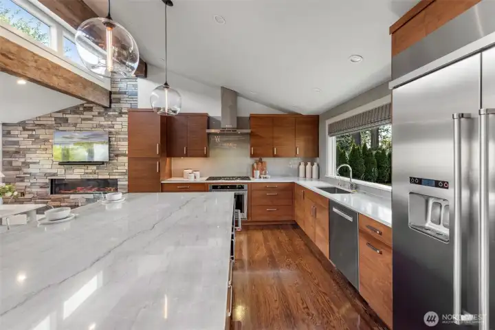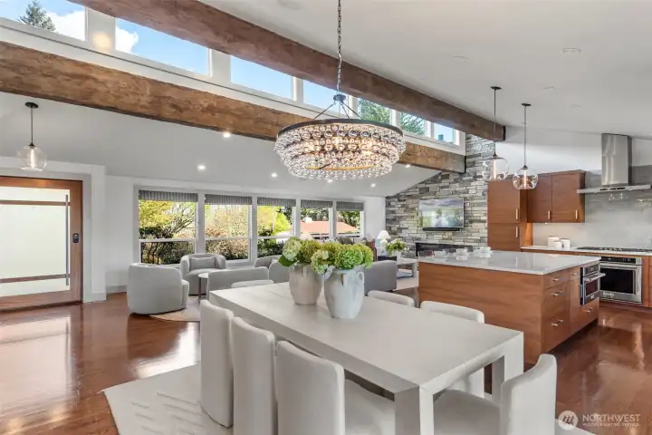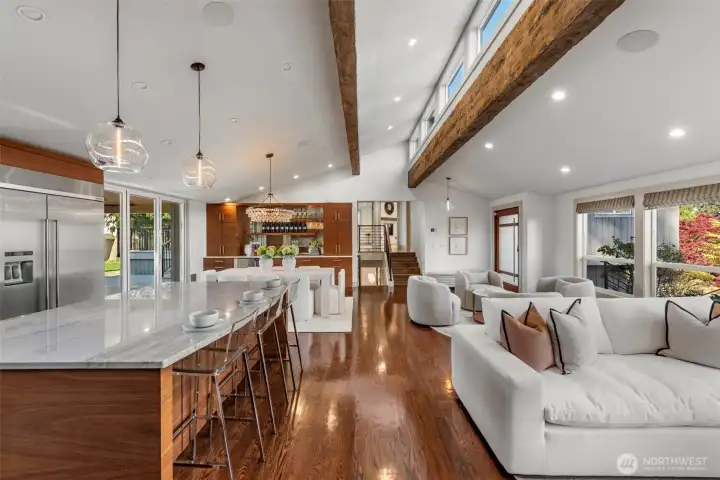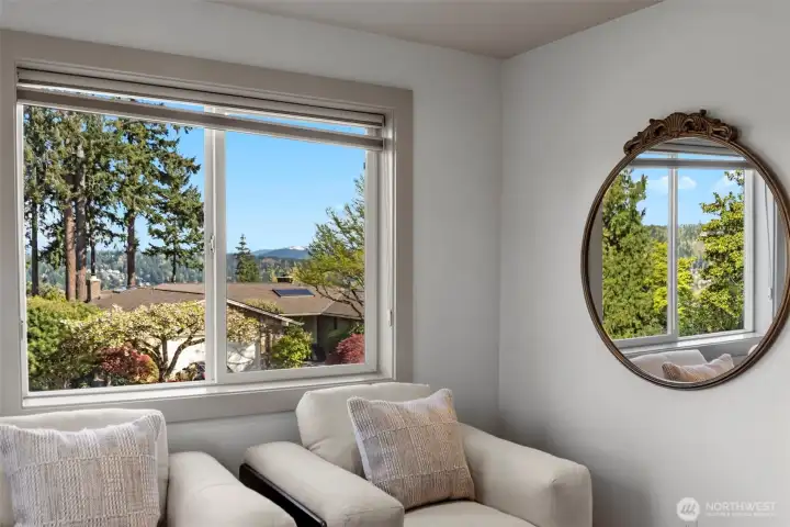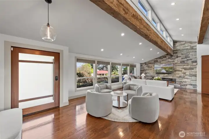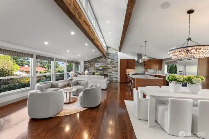 Extensively remodeled with over $800K invested, this standout Tam O’Shanter home offers a rare blend of luxury, privacy and modern comfort. Sun-drenched interiors feature an open-concept layout, soaring ceilings and high-end finishes throughout. The chef’s kitchen flows seamlessly into expansive living and entertaining spaces, while the reimagined primary suite impresses with its own fireplace, spa-like 5-piece bath, walk-in closet and in-suite washer/dryer. Smart home features, designer lighting, newer Daikin HVAC and quality upgrades elevate every detail. Enjoy a rare, large and level fully fenced backyard with new TimberTech deck and hot tub—ideal for indoor-outdoor living. Positioned on an elevated site, the home captures pleasant territorial views on clear days. Located in the coveted Tam O’Shanter golf community with access to clubhouse, pool, tennis/pickleball and golf. Quiet setting in the heart of Bellevue, just minutes to Microsoft, tech campuses, parks and top-rated schools.