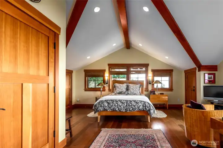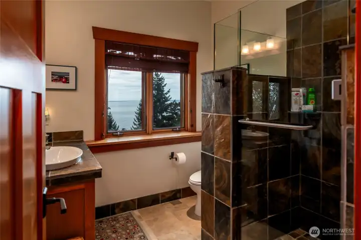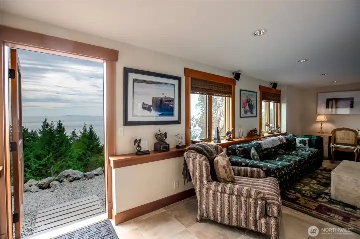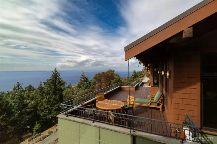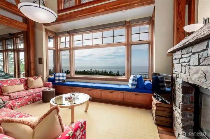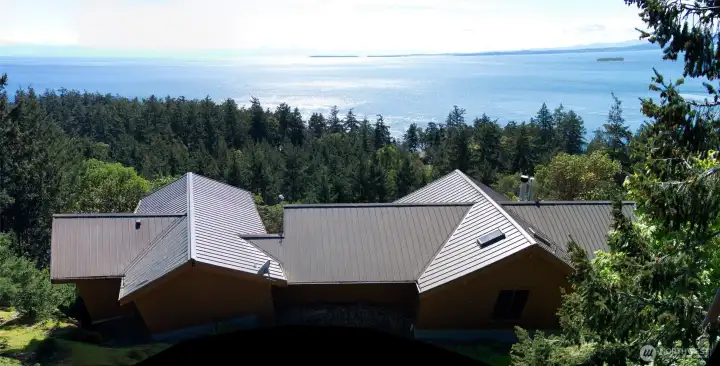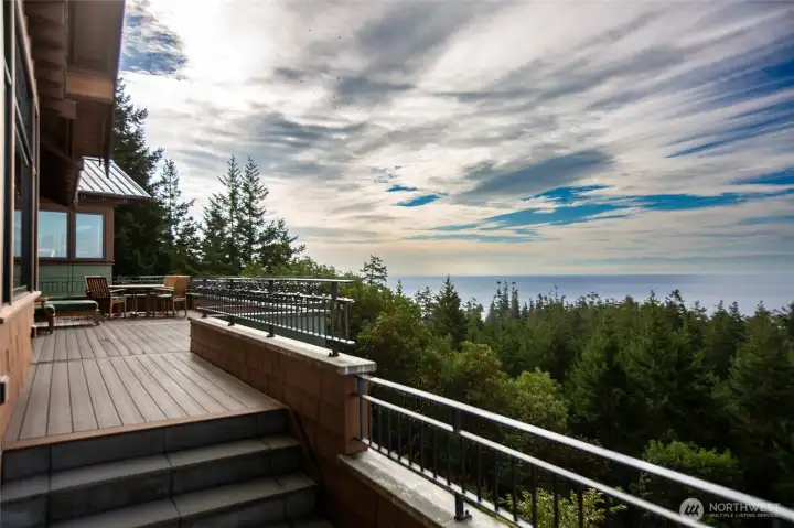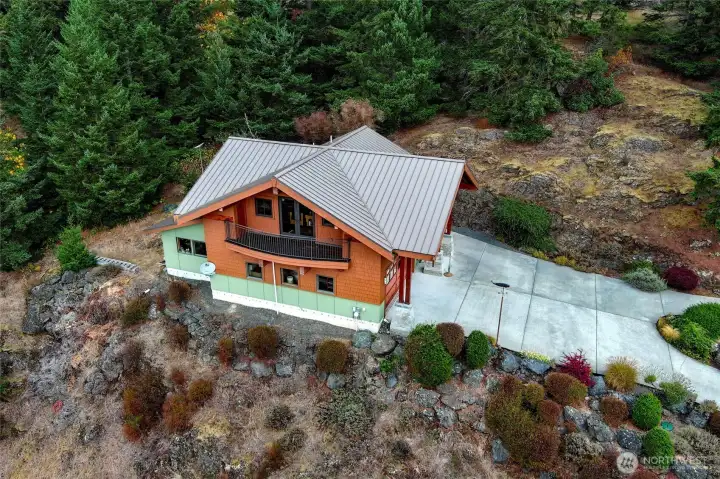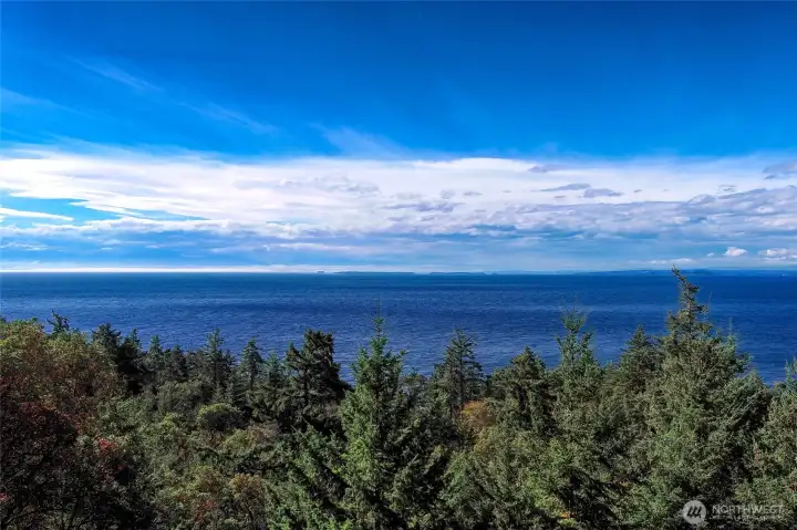 Perched on the iconic Westside Road of San Juan Island, this private 5-acre estate captures breathtaking 180° views of Haro Strait, passing boats, and majestic sunsets. Elegantly designed with timeless architecture and quality craftsmanship, the 3,464 sq. ft. home features a main-floor primary suite, expansive picture windows, and refined spaces for entertaining. A detached garage with shop and guest/office space above complements beautifully landscaped grounds and spacious deck designed for indoor-outdoor living. An ideal island retreat offering privacy, elegance, and some of the best views on San Juan Island.