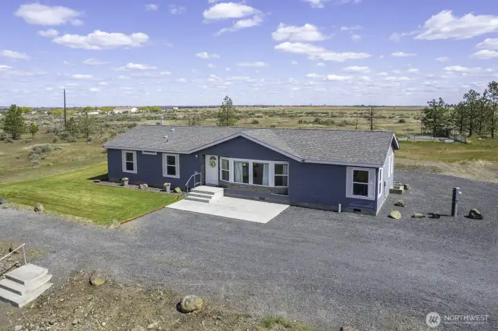 Enjoy peaceful country living with this well-maintained 3-bedroom, 2-bath double-wide manufactured home set on 40 expansive acres. Inside this home is new carpet, updated finishes, a great layout with 2 living areas, a fireplace and dining area with a door to the back patio. This home captures panoramic views along with stunning sunrises and sunsets. The property features multiple outbuildings, including a 40x60 shop with concrete floor, insulation and finished—perfect for hobbies, storage, or all your recreational toys. With plenty of open space and room for animals, this property offers the ideal blend of functionality, privacy, and possibility.