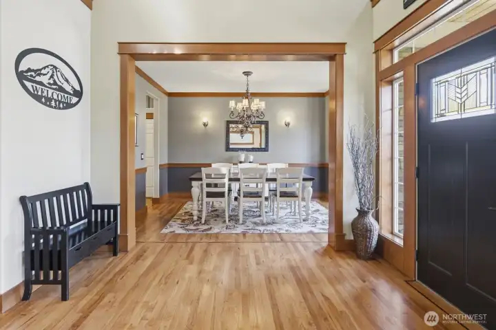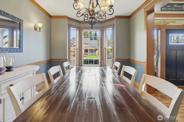 Calvert Ridge, one of Puyallup’s most exquisite and close-knit neighborhoods, proudly presents this gorgeous 4-bedroom home to market. Quietly tucked away at the end of the street, this exceptional property offers privacy while remaining just minutes from the mall, restaurants, hotels, park & ride with direct bus to Sounder Train, schools & the fairgrounds. Inside, you’ll discover quality craftsmanship throughout, featuring rich wood floors, elegant millwork, beautifully wood-wrapped windows & comfortable A/C. The open-concept design showcases an expansive kitchen with an entertaining bar, seamlessly flowing into the dining area and inviting family room—perfect for gathering & everyday living. Additional highlights include a stunning custom wood-built entertainment center, cozy fireplace, and formal living & dining rooms. Upstairs, enjoy a spacious bonus room and convenient laundry area, along with 4 generously sized bedrooms including a luxury primary suite. Step outside to a private patio, raised garden beds, and a meticulously maintained, beautifully landscaped yard complete with sprinklers. A rare roll-up back garage door adds convenience & functionality. Oversized 4-car tandem garage offering generous depth for vehicles, storage, or hobbies. Smaller neighborhood with HOA park and a strong sense of community, featuring a no-thru street with low traffic. This impressive home truly has it all—come see it today!