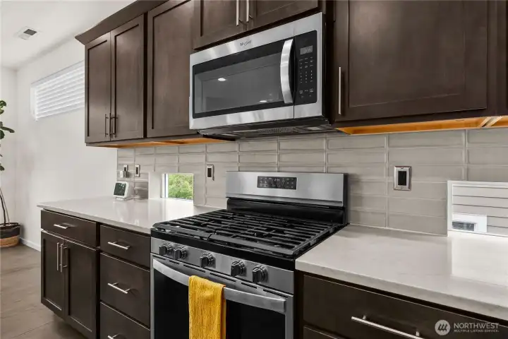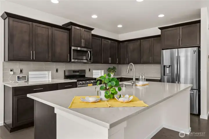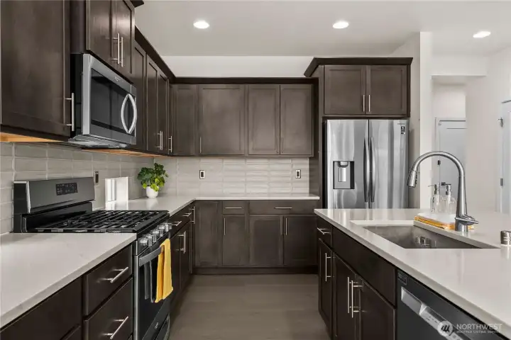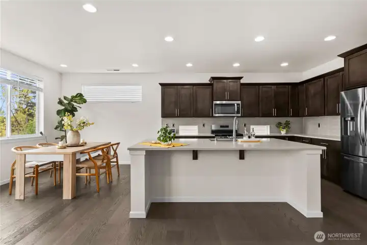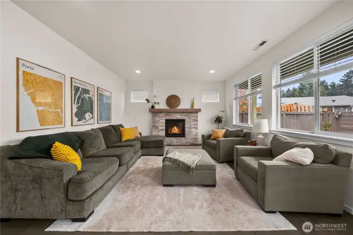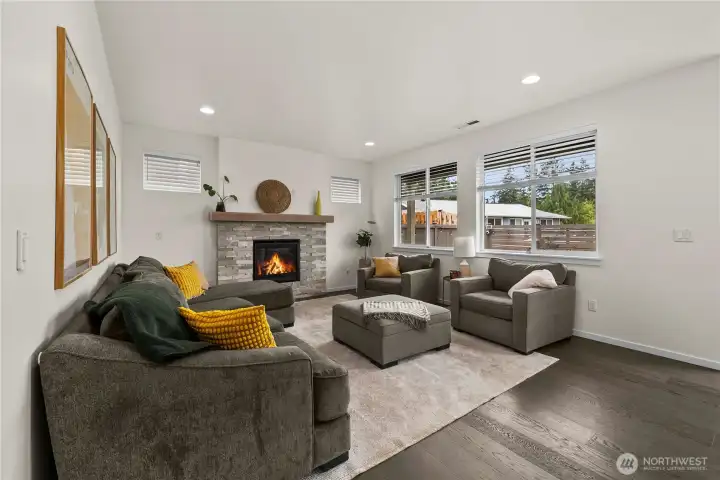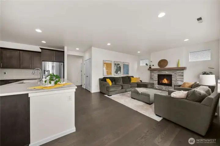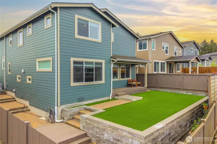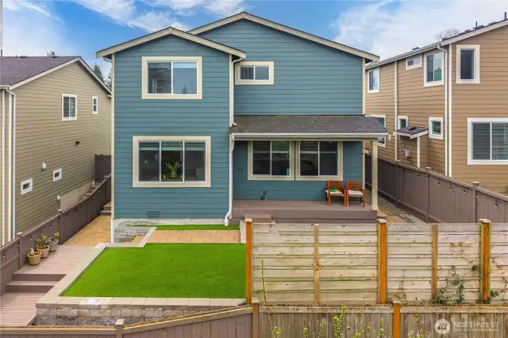 Welcome to this beautifully maintained home, where modern luxury is combined with comfort and convenience. Thoughtfully upgraded throughout, it features premium enhancements including central A/C with dual-level sensors for optimal comfort, smart appliances, automated lighting and switches, and stylish blinds. The open-concept main level showcases rich hardwood floors and seamless flow between the kitchen, dining, and living areas—perfect for both everyday living and entertaining. The kitchen includes a spacious seating island and easy access to a stunning, fully fenced backyard designed with no expense spared. Enjoy low-maintenance, pet-friendly turf, multiple entertainment decks, a paved stone walkway, storage shed, and a newly constructed retaining wall with proper drainage for added peace of mind. A cozy gas fireplace, ¾ bath, and a versatile guest room or home office complete the main level. Upstairs, you’ll find a generous bonus room, a spacious primary suite with a spa-inspired ensuite and walk-in closet, two additional bedrooms, and a separate utility room with extra storage. Freshly painted throughout, this home is truly move-in ready. Ideally located just minutes from Kent Station, shopping, dining, and easy access to I-167—this is the perfect place to settle in and enjoy!