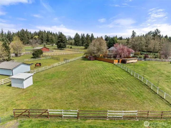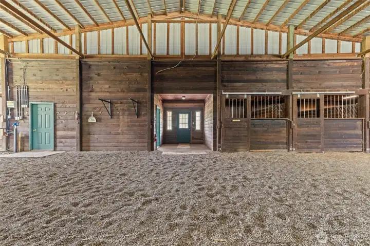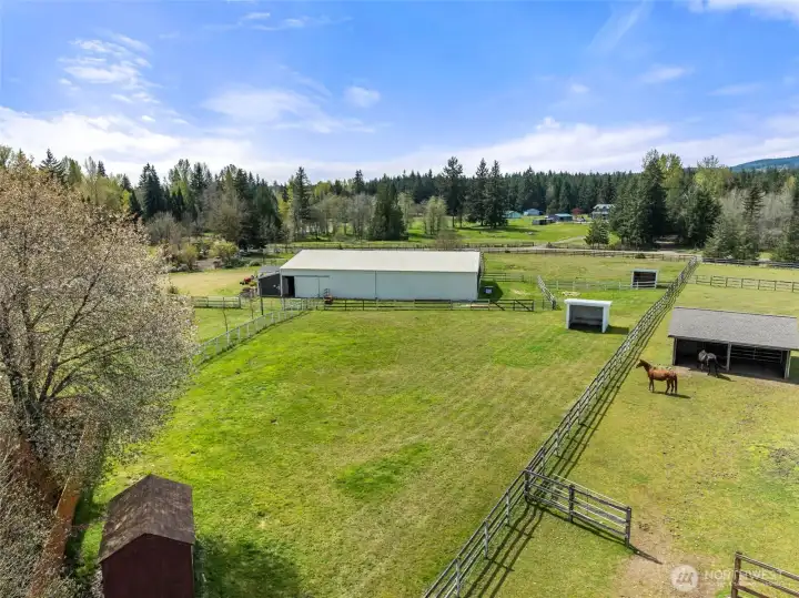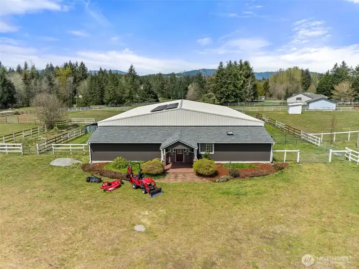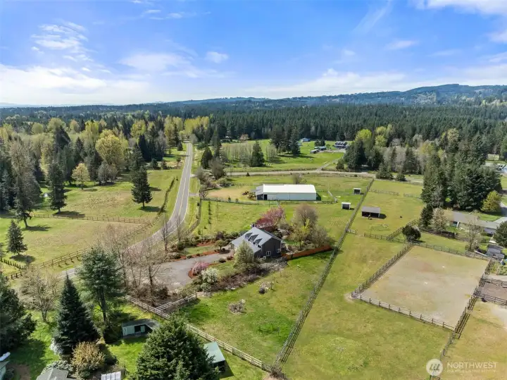 The equestrian estate you have been dreaming of. Set on 4.38 private acres in Delphi Hills, a true equestrian community with horse access to the approx.110,000-acre Capitol Forest Trailhead and its 100+ miles of trails, scenic overlooks, creeks, and camping facilities. Ride horses, hike, or take motorized off-road vehicles straight from the property. Dual-gated entry opens to a 3-BD residence with living room, family room, sun-drenched solarium, kitchen, 2-car garage, wood-burning FP, hot tub, and landscaped private backyard. Separately gated 7,700 sqft clear-span equestrian facility anchors the property: office, tack room, 7 stalls, wash room, and covered arena that lets you ride year-round regardless of Pacific Northwest weather. Seven fenced pastures, & paddocks, 2 loafing sheds, garden shed, and wood shed complete the operation. Ideal for a homesteader, livestock owner, or horse trainer, or potentially open a boarding facility for serious income in an underserved market. Solar panels offset your power bill. Fresh paint, new metal roof, fully fenced. Ample RV and trailer parking with full turn-around. 10 min to I-5, 15 min to Costco, Walmart, Home Depot, shops, and restaurants. Region offers world-class lakes and rivers for fishing and kayaking, 20 min to downtown Olympia with full city amenities and Puget Sound boating access, 90 min to expansive Ocean Shores beaches, near the Olympic National Forest with world-class trails, camping, hot springs and outdoor amenities.
