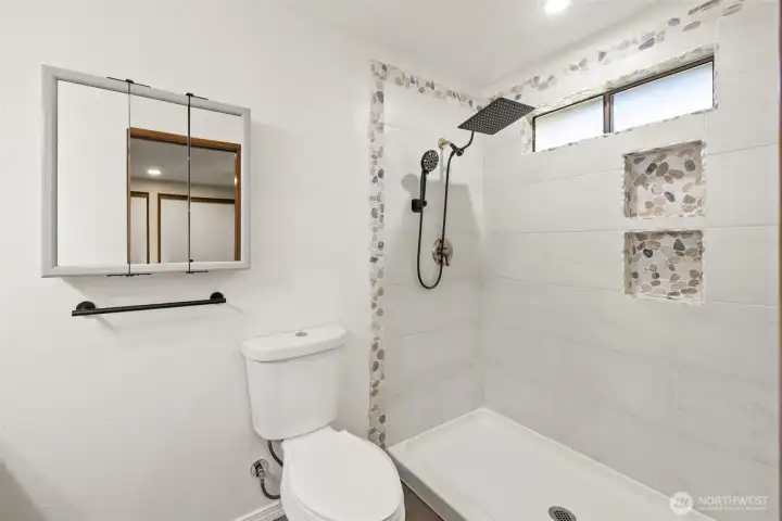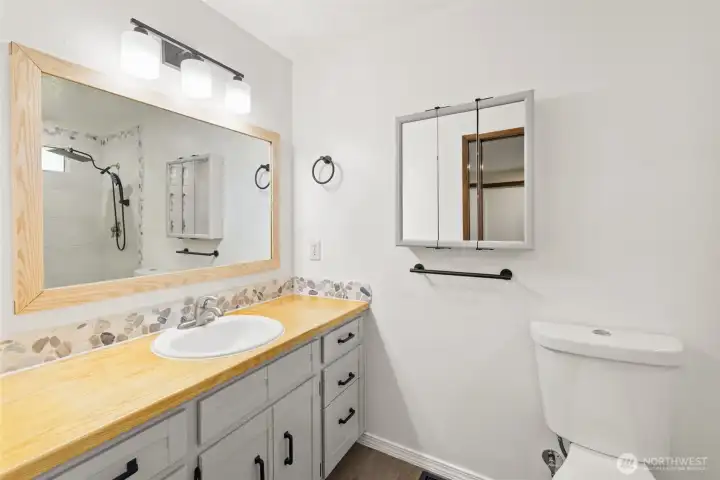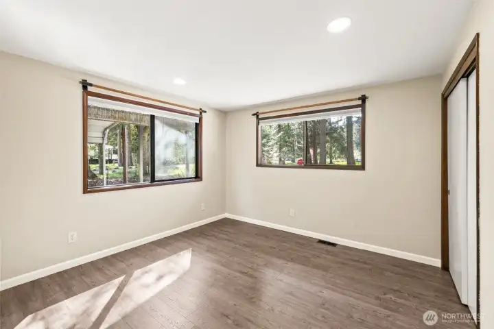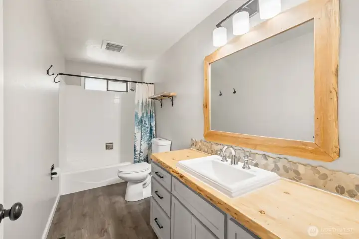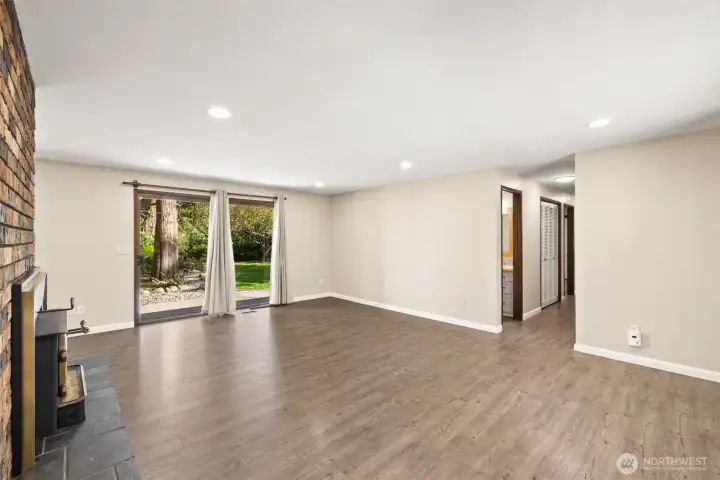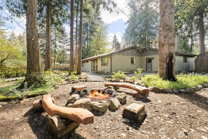 Tucked on ¾ of an acre, this enchanting property offers a park-like setting with a rare irrigation waterway meandering through the entry, creating a serene, storybook backdrop. Evenings under the trees feel magical, with lush ferns, soft landscape lighting, and a charming fire pit area. Raised garden beds, apple and plum trees, blueberries, raspberries, and thoughtfully designed landscaping with drip lines make this a gardener’s dream. The outdoor space is both functional and inviting, featuring a concrete patio, fenced areas, chicken coop/run, covered RV parking with power/septic, additional outbuildings for storage or hobbies, and covered entry porch. Inside, the home offers warm, inviting finishes including vinyl plank flooring, newer paint, forced air heating, and a coffered kitchen ceiling, along with a cozy wood-burning Lopi fireplace insert with brick surround. A sliding door off the dining area opens to the backyard, seamlessly connecting indoor and outdoor living. The primary suite features double closets and a beautifully finished bath with live-edge details, pebble accents, and a rain shower. Two additional bedrooms offer a walk-in closet and built-in shelving, while the second bath echoes the same natural textures and custom feel. The home is complete with an oversized 2-car garage with laundry, utility sink, 30 and 50amp 220V outlets. A rare blend of functionality, charm, and natural beauty, at a great price in Sunny Sequim!