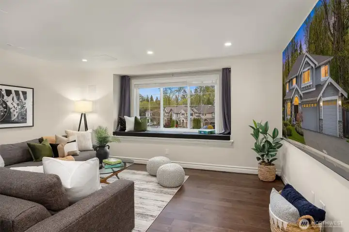 An inviting reading nook creates the perfect corner for quiet moments.