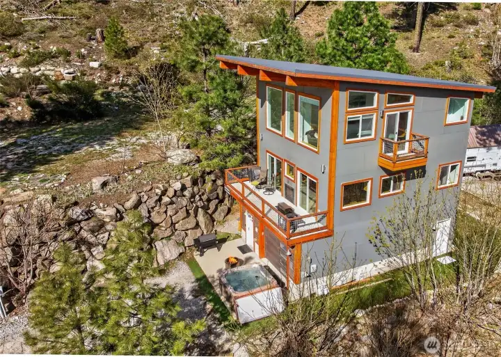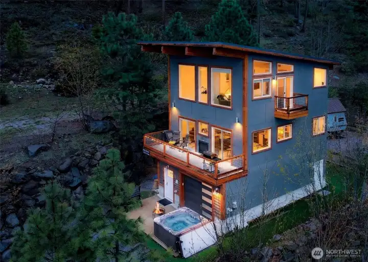 Expansive lake and mountain views set the tone for this alpine retreat, offering generous sleeping spaces including a charming loft bedroom and full bathrooms on all three levels. The lower level is warmed by radiant heating and features a beautifully finished indoor/outdoor room with a garage door opening onto a lake-view patio—perfect after a day on the slopes or trails. Bring your kayak or paddleboard down to a terrific access point on beautiful Lake Wenatchee, where a sandy beach invites long, sun-filled days spent lakeside. After a full day of mountain adventure, unwind beneath the alpine sky with a relaxing soak in the hot tub. Ideally located near the Dirtyface Peak Lookout Trail, enjoy quick access to scenic hikes with sweeping vistas of the lake and surrounding Cascade peaks.