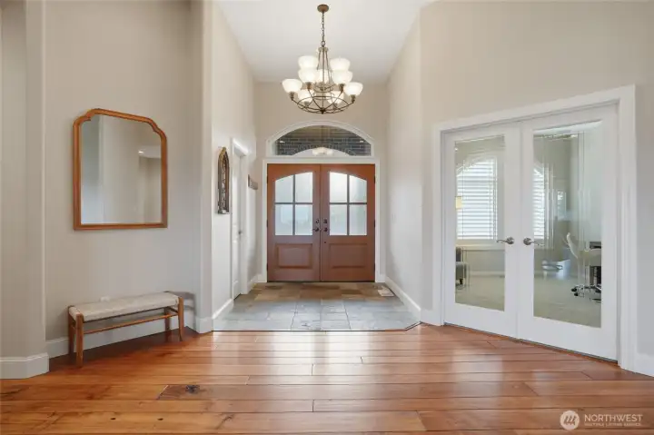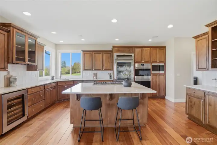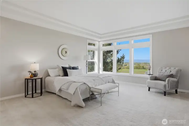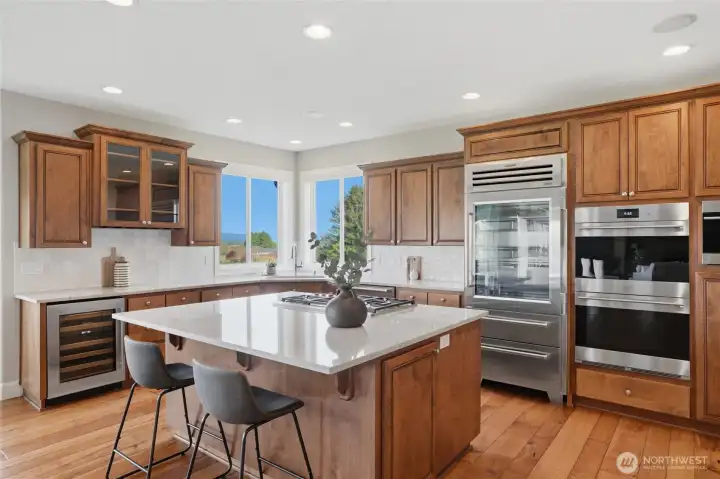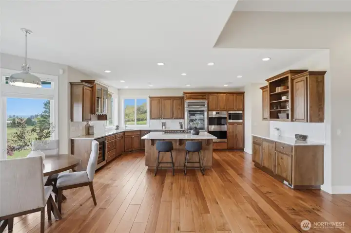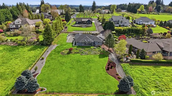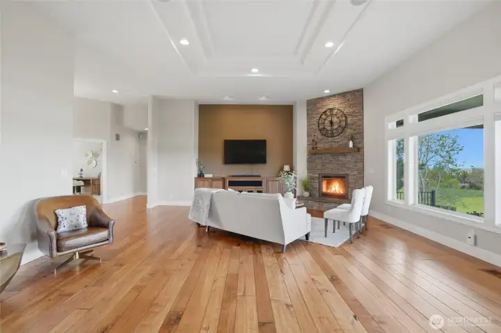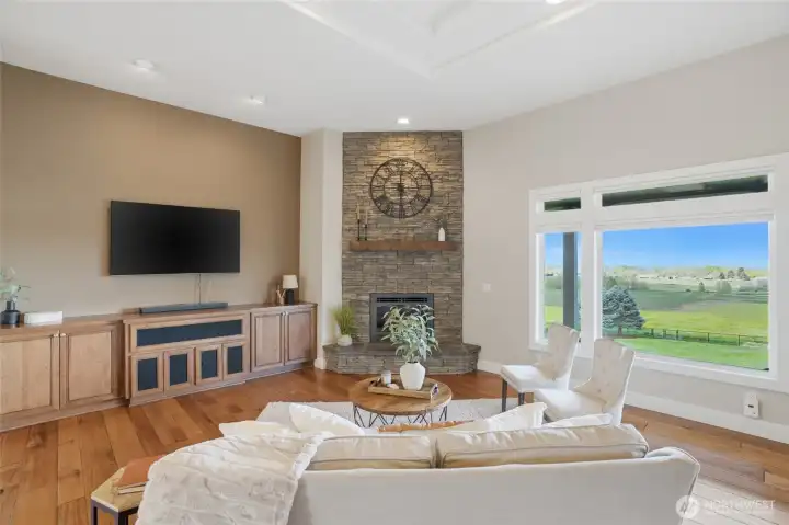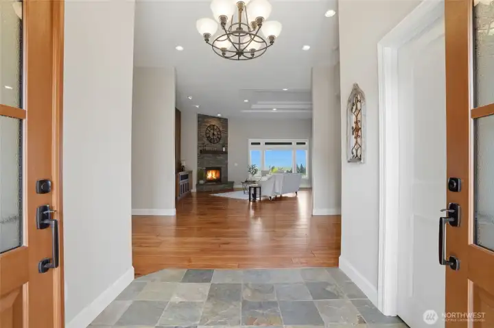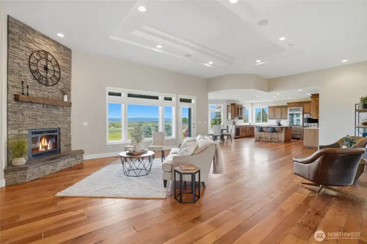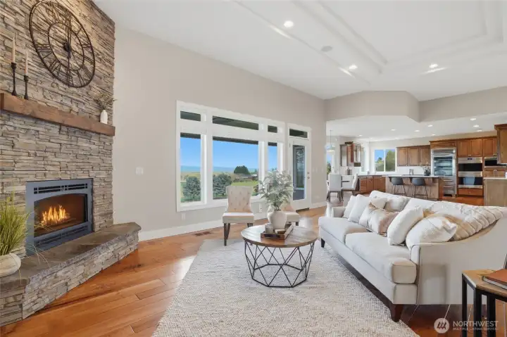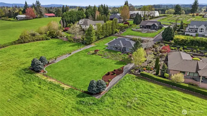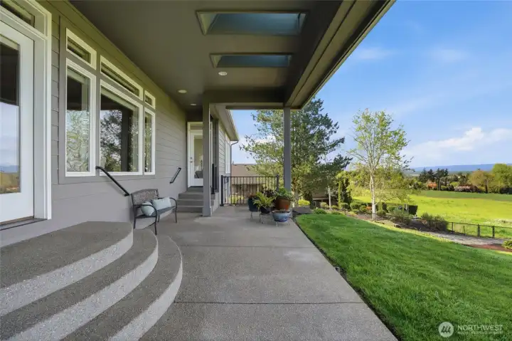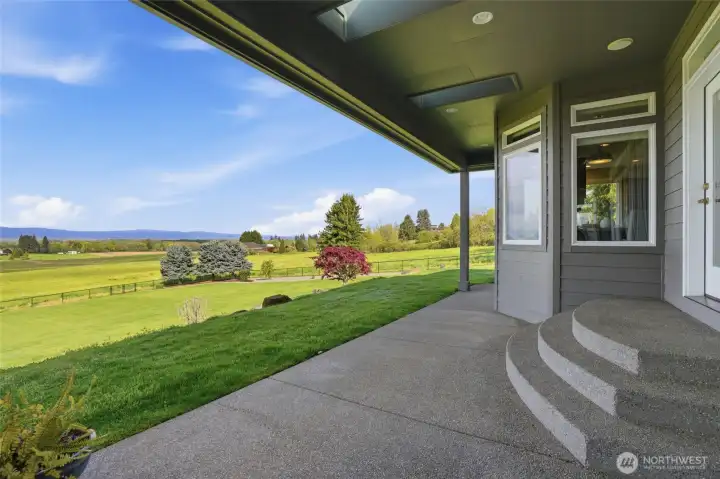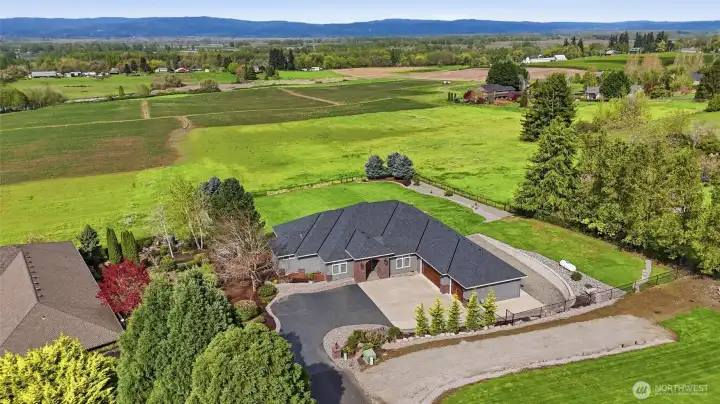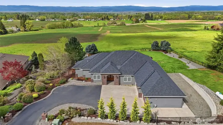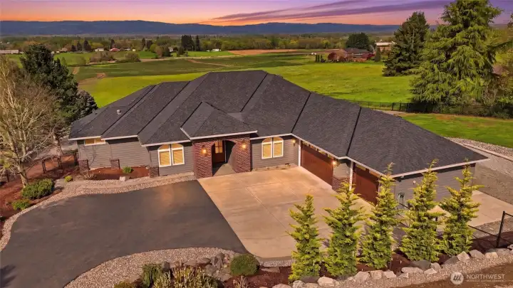 Welcome to this rare custom-built luxury home in Ridgefield offering true one-level living on a private 1-acre estate with sweeping valley & Columbia River views. This thoughtfully designed property features 3 spacious bedrooms + an office space, hand scraped hardwood floors, soaring ceilings, and an open great room built for comfort & entertaining. The updated chef’s kitchen includes new Taj Mahal quartzite countertops, tile backsplash, custom cabinetry, new: stainless steel Subzero & Wolf appliances with double ovens, range top, down draft, dishwasher, refrigerator, microwave & wine fridge. A large island & walk-in pantry add function and style. The primary suite is a private retreat with large view windows, direct exterior access to the covered patio, walk-in closet, oversized shower, and bidet. Enjoy indoor-outdoor living with a covered patio and potential hot tub space! new fully fenced back and side yards, and professionally enhanced landscaping. Extensive improvements include 340’ French drain, 135’ retaining wall, additional excavation & drainage work. Major upgrades include a new Presidential roof, recently resurfaced road, upgraded garage doors, new front entry, flashed skylights, updated attic insulation, updated hardware, shades & shutters throughout. Oversized garage with EV hookup & newer water heater. Sprinkler system, and meticulous maintenance complete this move-in ready luxury home with views for days. Ask your Realtor for the full updates list!