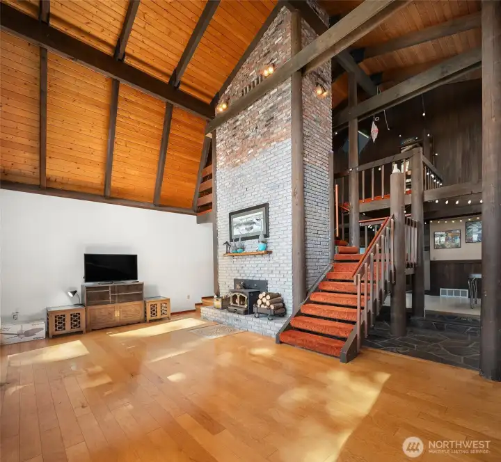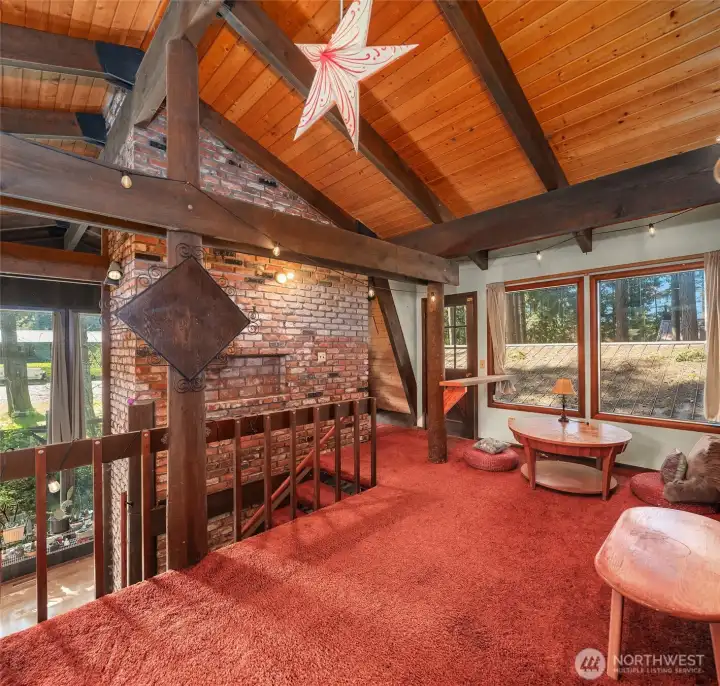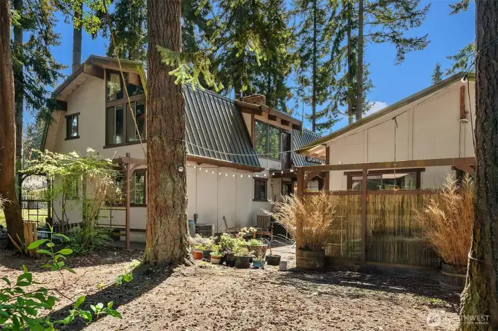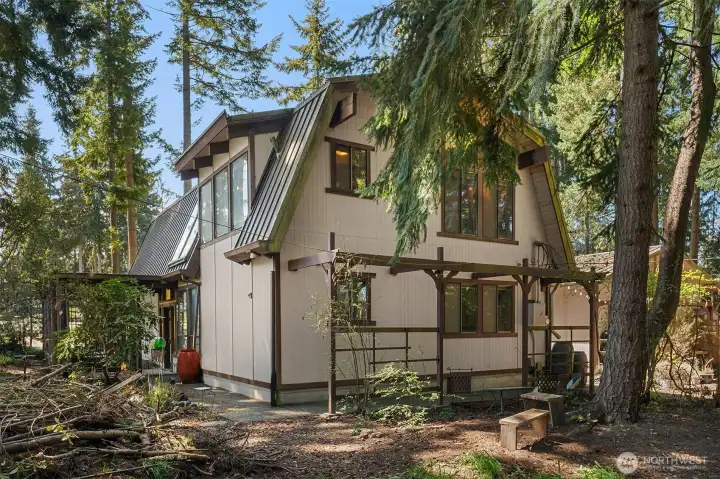 Tucked into the scenic West side of Port Angeles, this home offers a rare blend of privacy, natural beauty, and proximity to in-town amenities. Just minutes from the entrance to Olympic National Park, the location provides easy access to hiking, skiing, and year-round recreation, while still enjoying the quiet charm of a residential setting. This expansive lot features a circular driveway and oversized parking area in front of the two-car garage. On either side of the architecturally appealing gambrel style home are covered breezeways with timber posts paying homage to the region’s deep history. Throughout the shy half-acre property, the seller sought to create a native plant sanctuary and curated a variety of native wildflowers in the natural landscaping. The primary structure features a main level bedroom and full bath, a comfortable kitchen and dining area, and – the hallmark of the home – towering, vaulted ceilings in the main living room with a two-story masonry fireplace. Upstairs, the loft is the perfect flex space adjacent to the primary bedroom, with en suite soaking tub. Included under the same roof as the detached garage and workspace is an extra bedroom and bathroom, perfect guest accommodation for friends while they visit your Olympic National Park base camp. You’ll love the opportunity this special property offers!