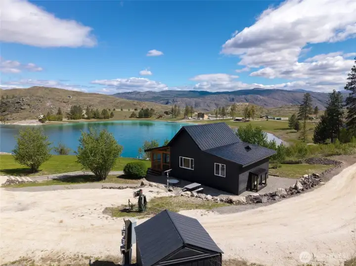 Turn-key lake living on the stunning shores of Alkali Lake! This rare 20-acre property offers nearly 500 feet of waterfront and borders State land, giving you the privacy and space that’s hard to find. The 864 sq. ft. home features vaulted ceilings and a light, open feel that brings the outdoors in.Step outside to a beautifully maintained yard and direct access to the lake’s signature turquoise waters—known for their peaceful setting and unique mineral qualities. Enjoy your own private setup with an 8’x16’ aluminum dock, 20’ walkway, kayak storage and 4 kayaks, as well as a 10’ aluminum boat included.The property is served by a strong producing private well and is truly ready to go—whether you’re looking for a weekend escape or a quiet full-time retreat. Alkali Lake is a private, electric-motor-only lake, keeping the environment calm, clean, and serene.If you’ve been waiting for something that offers space, water, and privacy all in one… this is it.