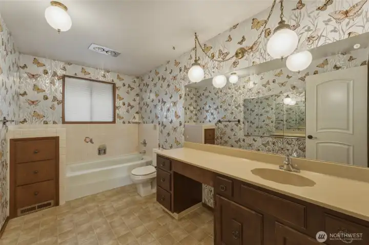 Nearly 4,000 sq ft on a rare 0.49-acre lot next to Vista Terrace Park, this spacious 5-bedroom, 3-bathroom brick home offers a quiet setting with beautiful views and room to spread out. Recent updates include new flooring and fresh interior paint. The flexible floor plan features multiple living areas, a library, and bonus spaces including a flex room with Italian mosaic tile flooring and a large storage room. The basement is already plumbed for a future bar or kitchenette, offering great potential for entertaining or multigenerational living. Additional highlights include a striking two-sided fireplace, heat pump with backup gas heat, fenced side yard, and durable brick construction. A rare opportunity in a desirable park-side location.