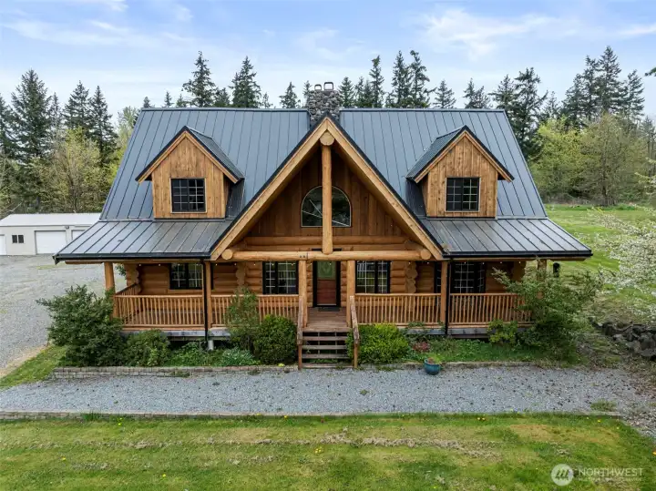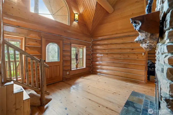 If you've been looking for space, privacy, and a home that actually feels different- this is it. Set on 5+ acres, this log home brings together warmth, character, and functionality in a way that's hard to replicate. Vaulted ceilings, natural wood throughout, and a statement stone fireplace create a space that feels grounded and inviting the moment you walk in. The layout offers room to spread out with multiple living areas and flexible bedrooms, while the land gives you the freedom to actually use it- whether that's animals, gardening, or simply enjoying the quiet. Outbuildings, open ground, and a circular drive make the property as practical as it is peaceful. Country living without being disconnected-privacy, space and a setting that makes you want to stay awhile.