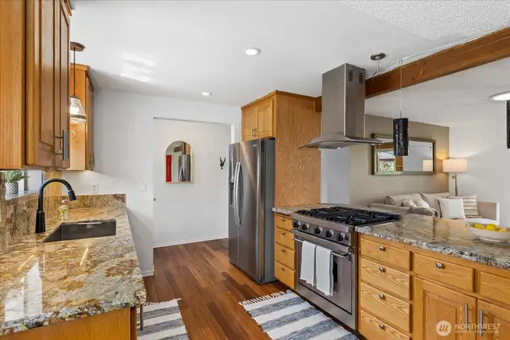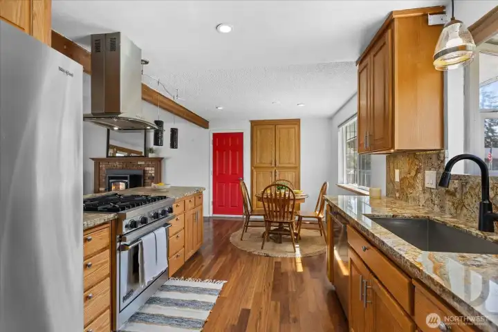 Lovely Sultan rambler on shy half acre lot, plus a large shop! The cozy living room is anchored by a pellet stove, and adjoins the updated kitchen and dining space. French doors from the living room to the covered deck! Light filled kitchen with a Viking gas range and hood, granite counters, garden window and bar seating. Built-in buffet storage or extra pantry cabinet in the dining area. Two bedrooms and a full bath down the hall. The extra large primary room has vaulted ceilings, a walk-in closet, ensuite bath with large walk-in shower (dual shower heads), and doors out to the deck! Large laundry room with plenty of work space separates the primary from the other side of the home, adding extra privacy. Huge partially covered back deck with a gas fire pit. Fresh exterior paint, newer roof and newer hot water heater! Fully fenced, level backyard with plenty of room for hobbies, gardens or animals! In addition to the attached 2 car garage, there is a 990 SF shop!! Shop has a roll up door and is on a separate sub panel- includes a 60 gallon compressor, 30 amp plug, heat fan and loft space. Additional 840 SF covered pole building! RV hookups! Tons of parking and endless possibilities! Located in a quiet cul-de-sac, this community has river access and a playground. NO HOA!! Close to town and HWY 2, with quick access to recreation- Stevens Pass, fishing, hiking, kayaking and more! Make this great property your own!