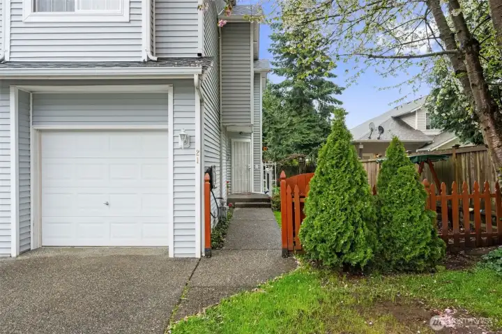 Tucked away at the end of a quiet dead-end road in desirable Lake Stevens, this beautifully maintained end-unit offers the perfect blend of privacy, comfort, and convenience—with NO HOA, giving you the freedom to truly enjoy your home. Featuring 3 bedrooms and 2.5 bathrooms, this home is completely move-in ready and has been exceptionally well cared for. Inside, you’ll find soaring vaulted ceilings, an abundance of natural light, and a versatile loft space upstairs, perfect for a home office, media area, or additional living space. The primary bedroom boasts its own vaulted ceilings and a full en-suite bathroom. Thoughtful touches, like a filtered water faucet in the kitchen, add everyday convenience and the availability of Ziply Fiber offers fast, reliable internet. Step outside to your own fully-fenced little oasis: a spacious backyard with plenty of privacy, complete with a tranquil water feature that's perfect for relaxing or entertaining, but small enough to warrant very little maintenance. The home’s end-unit placement adds even more seclusion. Parking is a breeze with an attached 2-car garage, 3 dedicated spots in front of the home, and plenty of additional neighborhood street parking. All of this in a quiet neighborhood that's just a short walk to Target, stone's throw from Costco, with quick access to SR 9. A rare find that truly has it all!