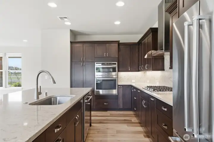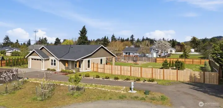 Charming Pacific Northwest retreat nestled in the heart of Sequim! Built by Anderson Builder, this well-maintained one-level home offers no-step living with beautiful mountain views, a peaceful setting, and abundant natural light throughout. Enjoy, high ceilings and recessed lighting enhance the spacious layout, featuring LVP flooring in the entry, living room, dining area, and office, with a slider leading to the rear covered patio for easy indoor-outdoor living.The functional kitchen includes wood shaker cabinets, granite countertops with full backsplash, and stainless steel appliances. Inviting bedrooms are designed for comfort, including a primary suite with an ensuite bath featuring tile flooring, tile surround shower, quartz countertops, and dual sinks.Enjoy ample outdoor space, perfect for gardening, entertaining, or relaxing in the serene surroundings. Conveniently located near local amenities, shopping, and outdoor recreation, this home blends tranquility with accessibility. A wonderful opportunity to experience the best of Sequim living!