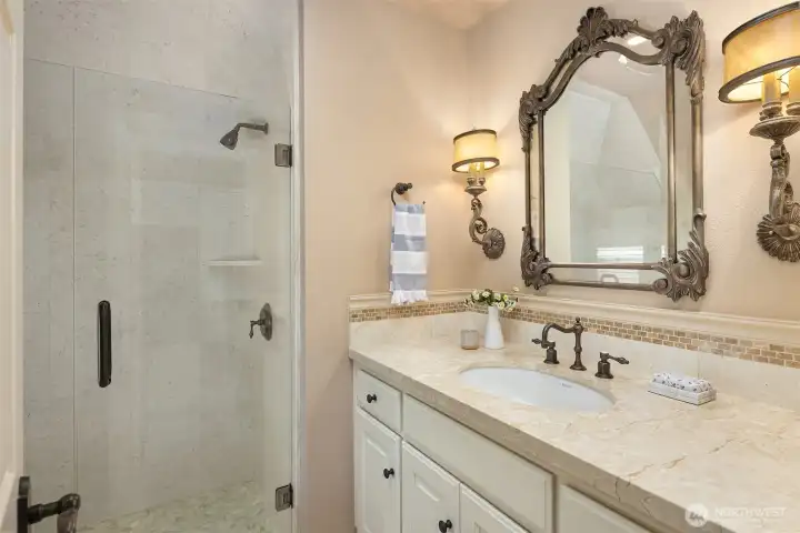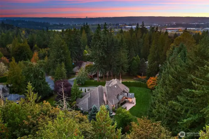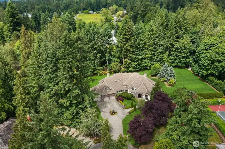 Where Luxury Knows No Compromise. Set within the coveted enclave of Gunshy Ridge, this expertly crafted Architectural Digest–inspired estate showcases exceptional quality and extensive custom millwork, where timeless materials and meticulous attention to detail come together to create a truly elevated and enduring sense of refinement. Tucked at the end of a quiet cul-de-sac on over an acre, the property showcases one of the largest and most usable backyards in the neighborhood. Featuring an expansive, level lawn framed by lush landscaping and designed for exceptional outdoor living. Spanning 6,051 square feet, the home is defined by grand yet inviting spaces, rich stone and hardwood finishes and walls of windows that seamlessly connect indoors and out. At the heart of the home, an exceptionally designed and crafted chef’s kitchen. Premium appliances, hidden wine cellar and extensive prep space opens to a warm, elegant family room and covered outdoor living area. The main-floor primary suite is a true retreat, offering private patio access and a spa-inspired bath for effortless main-level living. Upstairs, well-appointed bedrooms, a bonus room and a private theater with wet bar provide ideal spaces for relaxation and entertaining. A rare opportunity to own a premier estate in one of the Eastside’s most desirable communities.