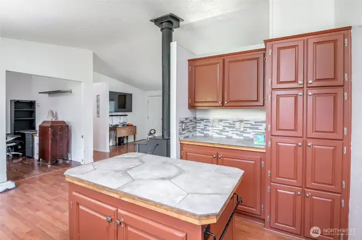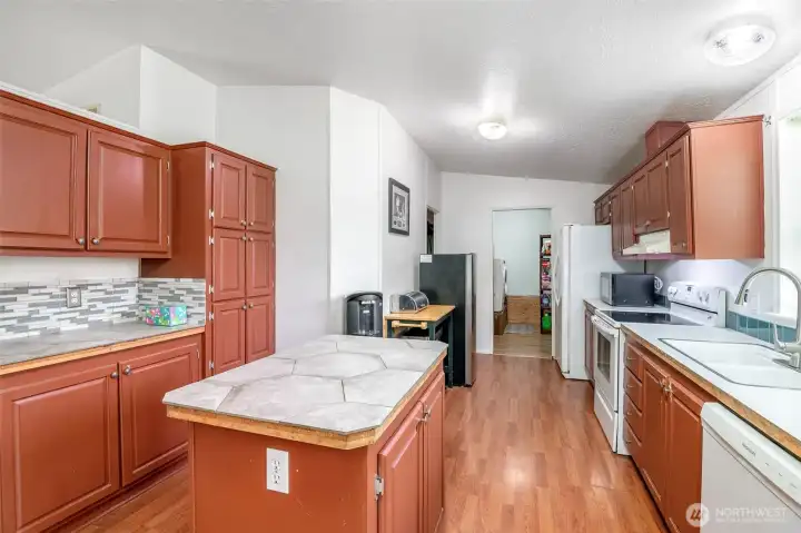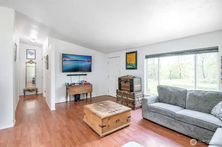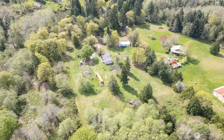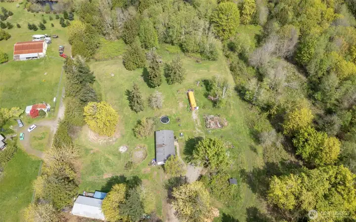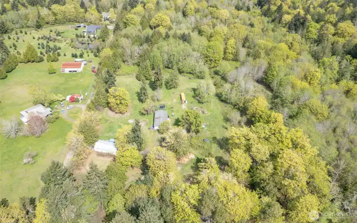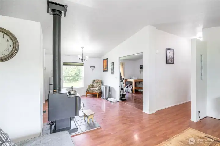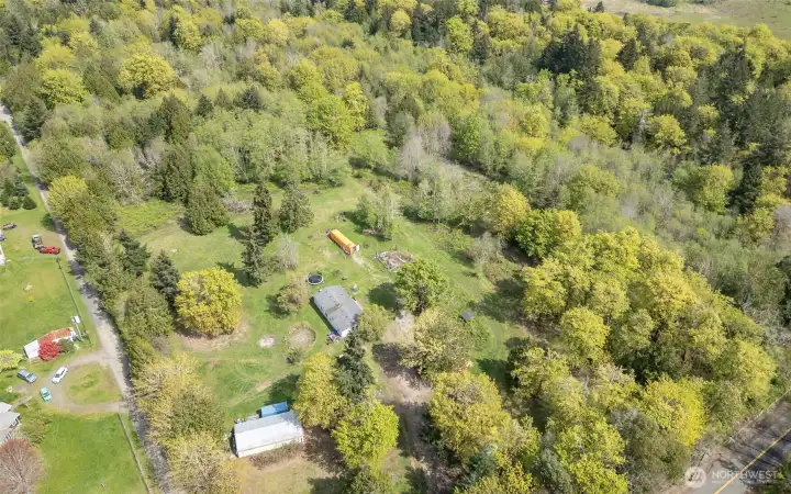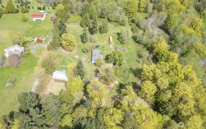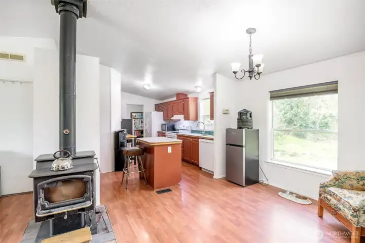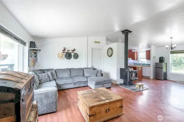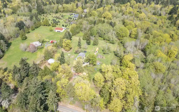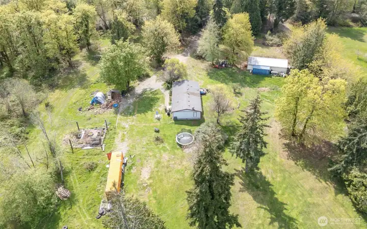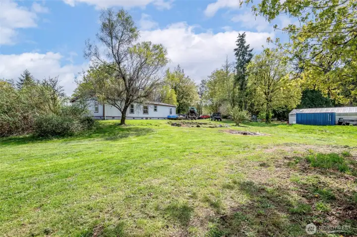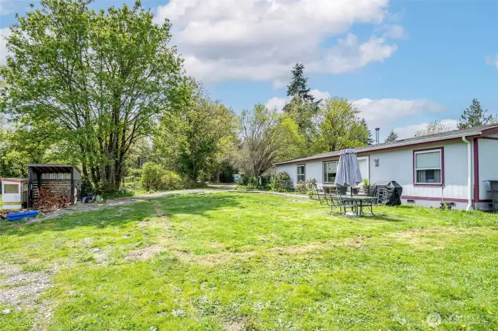 So many opportunities with this 10 acre property in quiet Lakebay community. The manufactured home on the property has vaulted ceilings for an open feel in the living and dining rooms. There is a cozy wood stove and stunning laminate hardwood flooring throughout. The kitchen offers tons of cabinetry and a center island plus access to the utility room that offers pantry space. The primary bedroom features wainscoting detailing, large walk-in closet and an en-suite bath. 2 additional bedrooms plus an additional full bath. The front porch overlooks the property which includes a shed, and fenced garden area. Storage Container goes with seller.