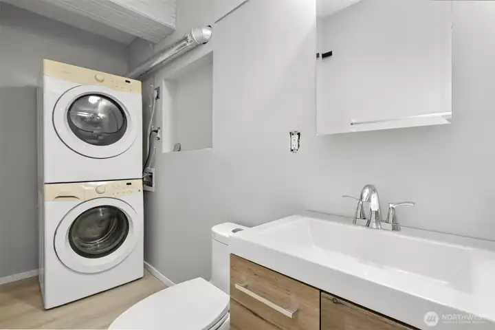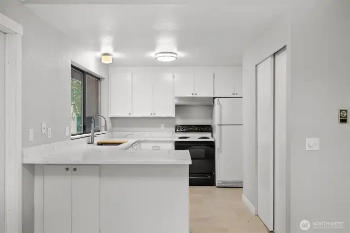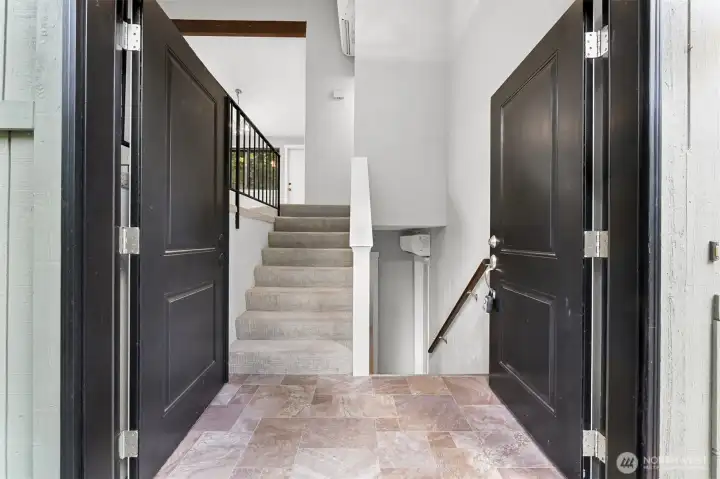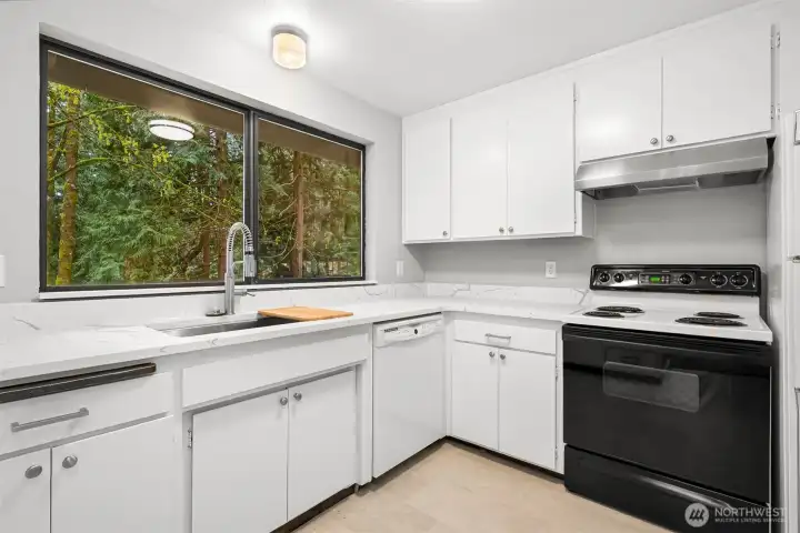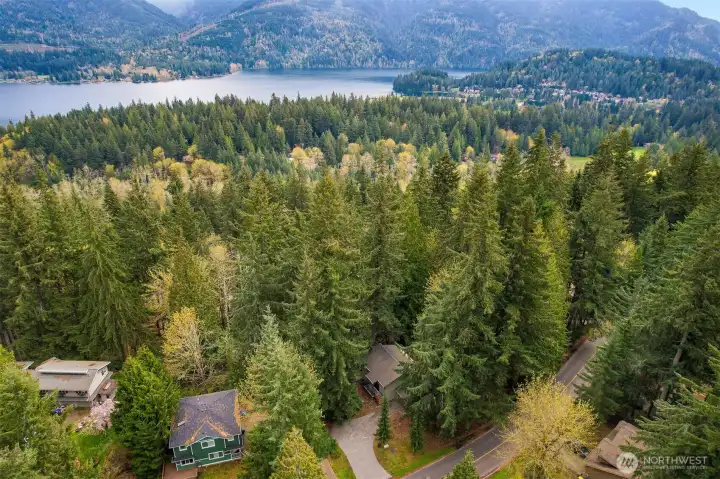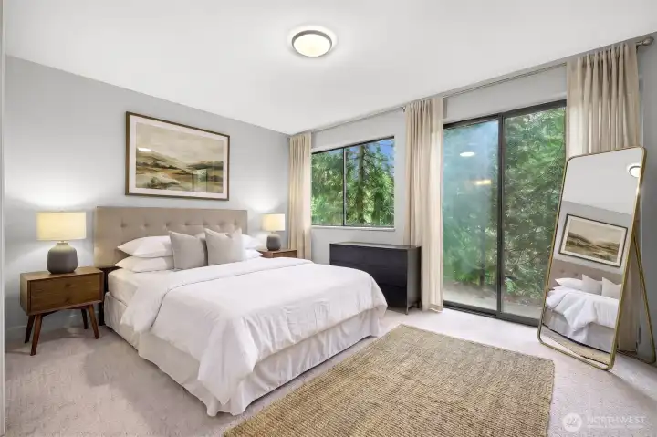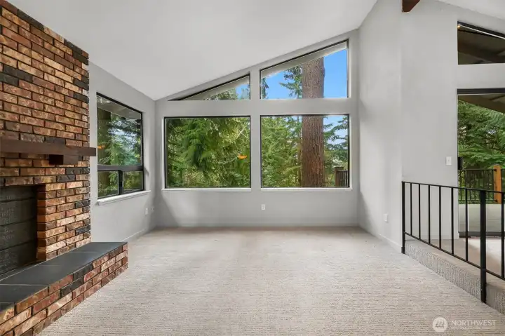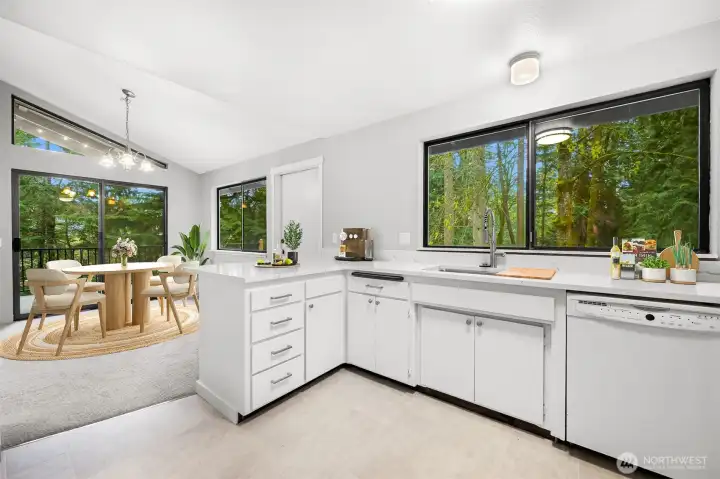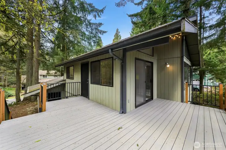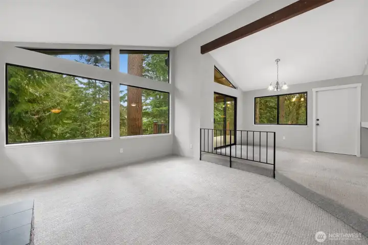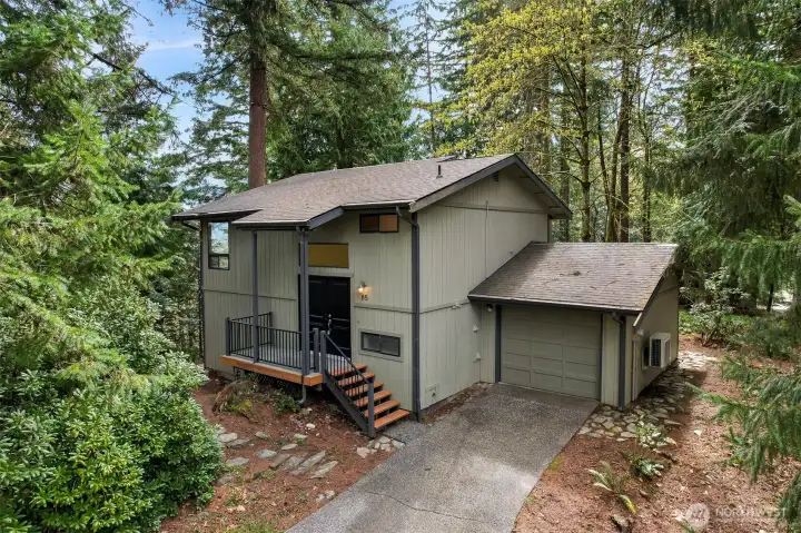 Nestled among the trees, this home offers a true sense of privacy and tranquility on a large triple lot. Spacious open-concept layout connects the living, dining, & kitchen creating a true entertainer’s dream. Soaring vaulted ceilings with exposed wood beams create a warm, inviting space, while windows on every side frame peaceful forest views. Double doors welcome you into your own private retreat, where indoor/outdoor living shines with a spacious, updated deck just off the dining room. New electric hot water heater and new mini split system on both levels installed in 2025, fresh carpet, attached garage, 3 bedrooms & 2.5 baths, this home truly has it all.